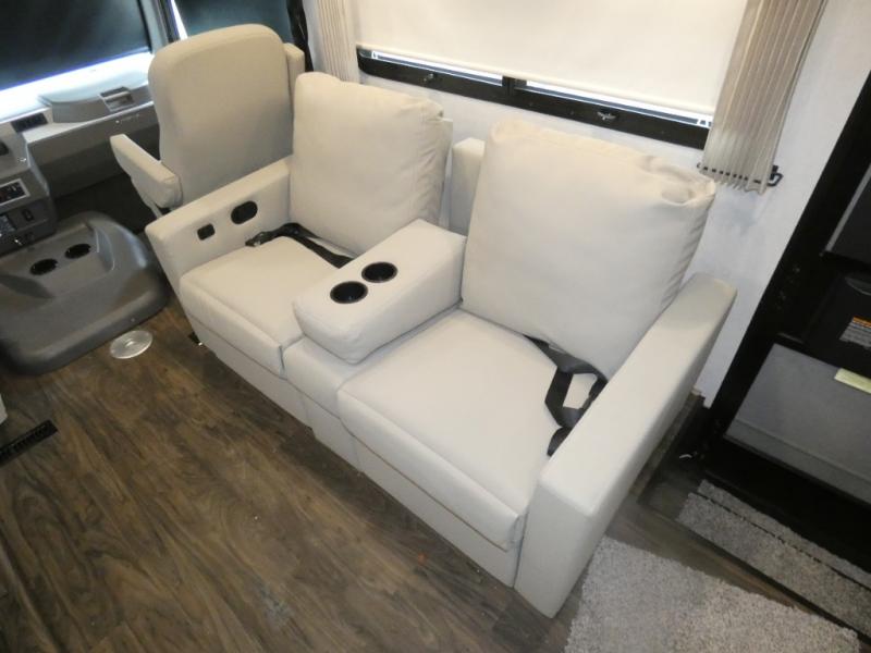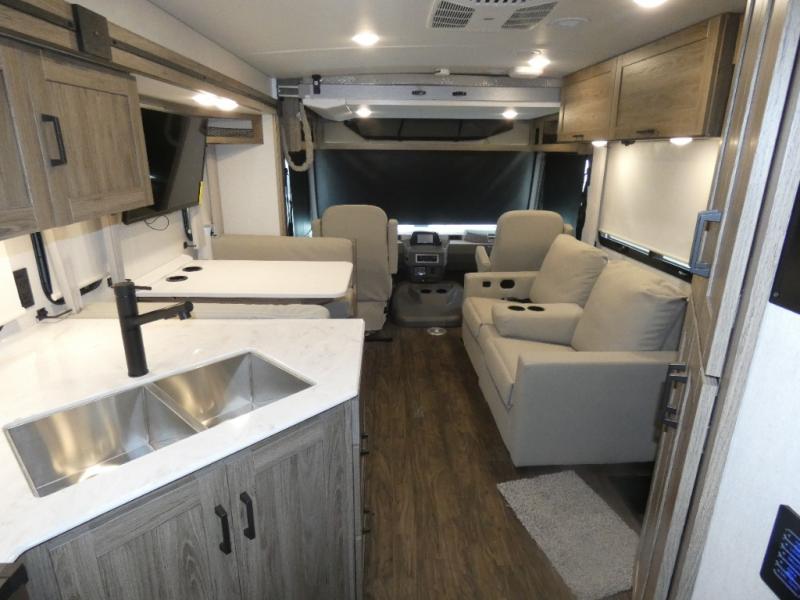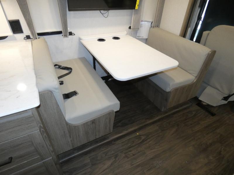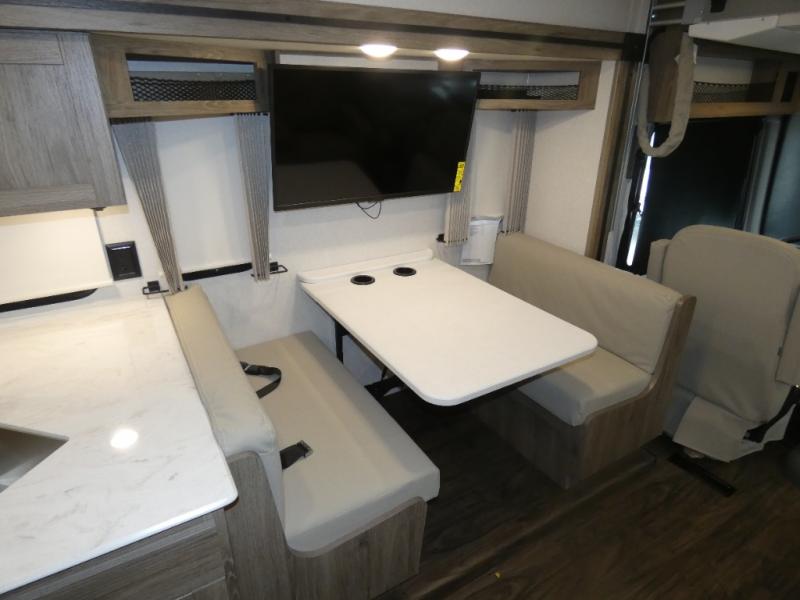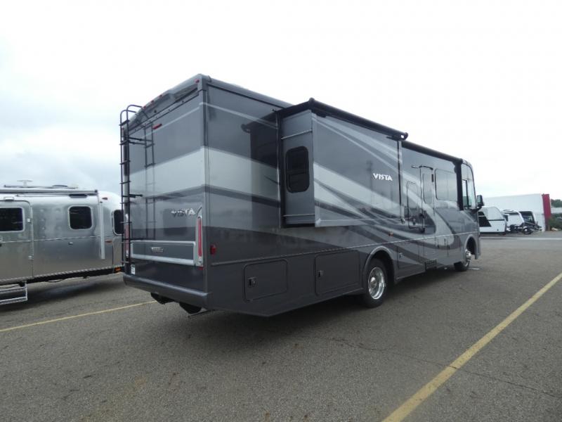 The Winnebago Vista Class A gas motorhome will expand your horizons and provide you a great traveling home on wheels! The Vista is powered by a 7.3L PFI V8 engine on a Ford F53 chassis with 5,000 lbs. of towing capacity which allows you to bring along one of your favorite toys. The adjustable swivel cab seats in front can slide and recline so you can be sure to have the perfect level of comfort in addition to entertainment with the 7" LCD color touch screen that is Sirius XM ready and Bluetooth compatible with Android Auto and Apple CarPlay. The powered blackout roller visor/shade on the front windshield provides extra privacy, and the passenger dash workstation with USB and 12-volt power port lets you get some work done while on the road.