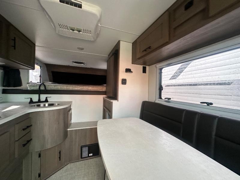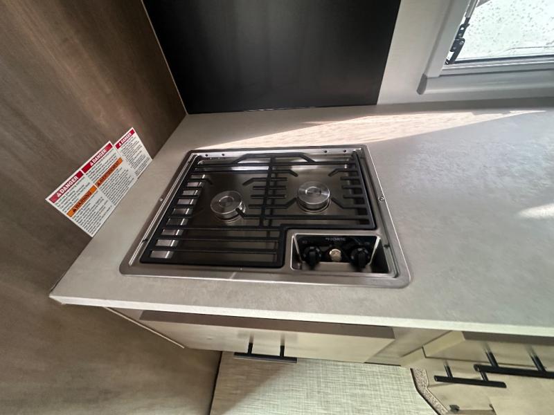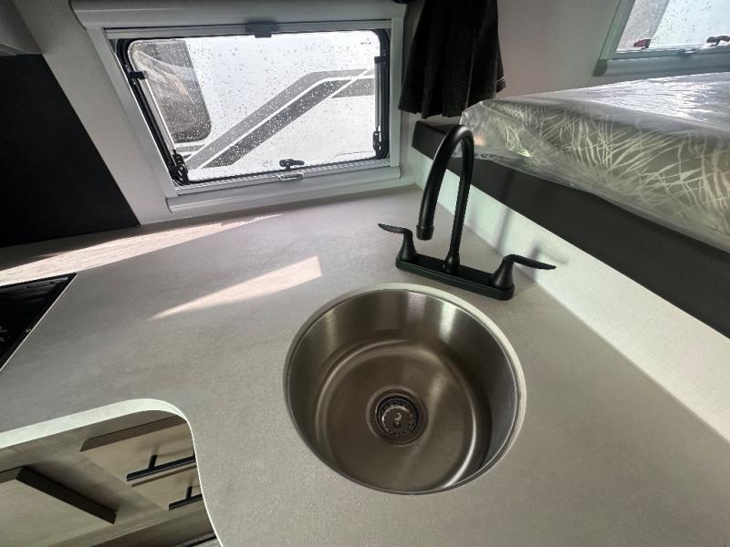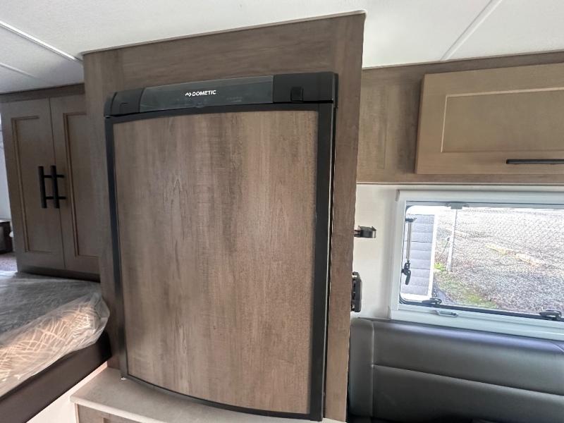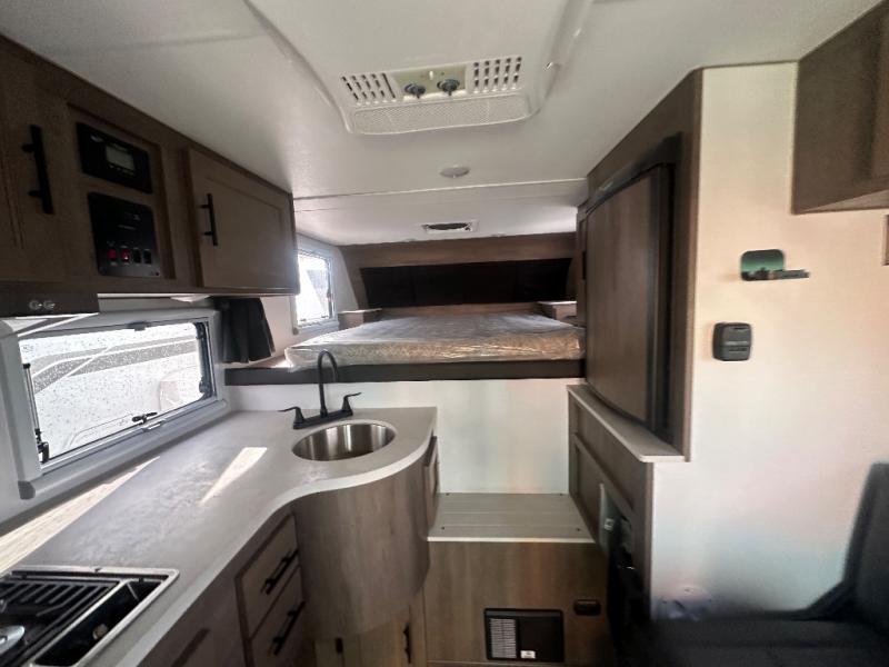 If you have one of today's heavy half-ton and larger long and short box trucks, then you need to get your hands on this truck camper! It is lightweight and affordable, plus it has a comfortable wet bath with a shower, Dometic toilet, power exhaust fan, and skylight. Get a good night's rest each night on the queen bed and keep your clothes looking their best stored in the wardrobe at the foot of the bed. You can even transform the roll-over sofa into a 42" x 68" bed for more sleeping space. You can fry up the catch of the day on the sealed two burner cooktop with residential grate and keep your beverages cold in the Dometic 3.5 cu. ft. refrigerator/freezer!