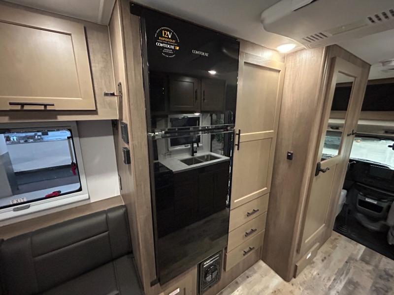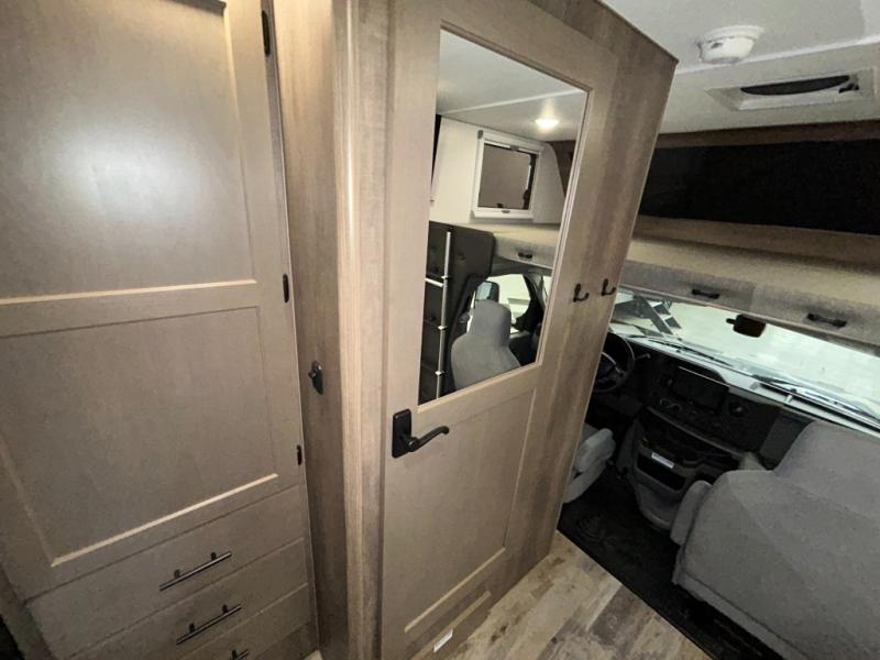 With any Overlander Class C gas motorhome by Adventure Manufacturing Inc., you will find a bold exterior with sloped lines inspired by ridgelines, ranges, and fjords! Each unit sits on the durable Ford E-Series chassis with a 7.3L V8 engine for power you can feel. These coaches could better be referred to as adventure vehicles with their capability and added clearance. Each model is constructed with a walk-on roof, a custom rear bumper with integrated lights and a class 2 hitch plus insulated acrylic windows with a screen and solar reflective shade. There is also industrial grade vinyl flooring inside, along with stained hardwood cabinet doors, a 12V Fantastic fan, and soft closing drawer slides to name a few comforts.