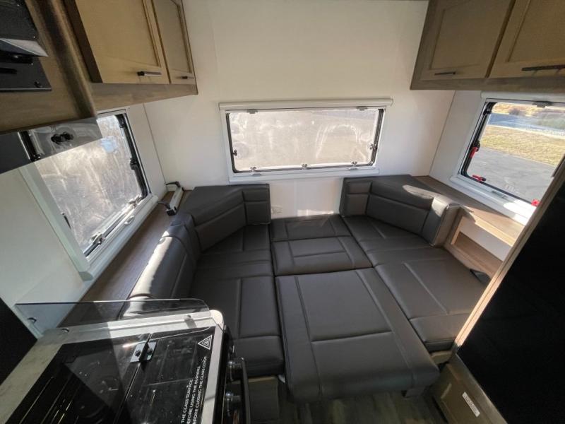 You can travel confidently in this compact coach that is under 21' in length! The rear 48" x 87" U-shaped dinette will provide a place to dine together, play card games, and convert to sleeping space at night, while the little ones take the cabover bunk. A three-burner cooktop and microwave oven will let you whip up your best meals, and there is a deep sink to make clean up easier than ever. Additional features include a convenient wet bath, USB outlets, plus storage spaces for personal belongings, camp gear and more.