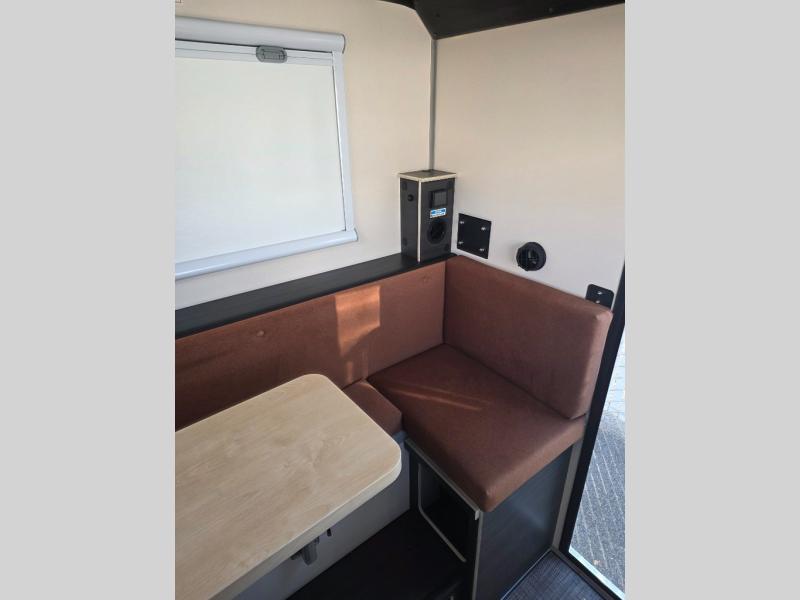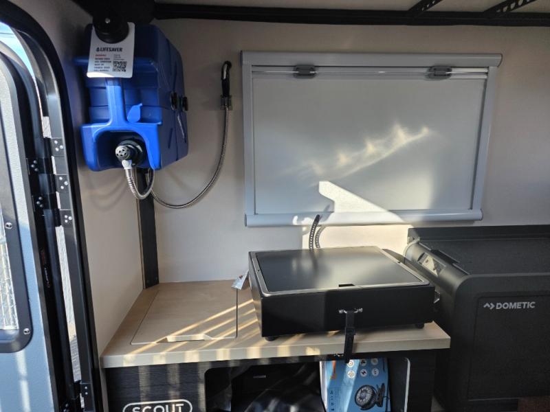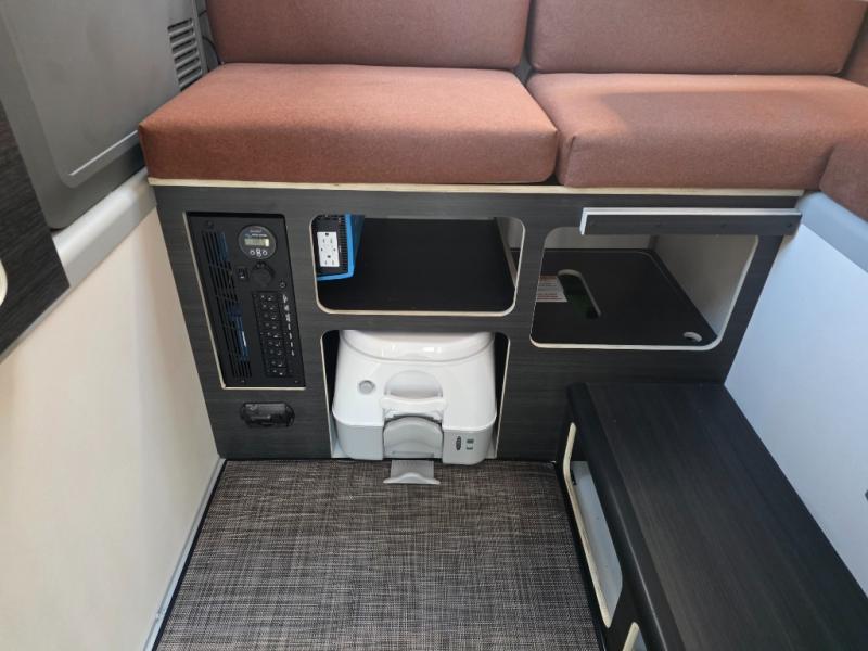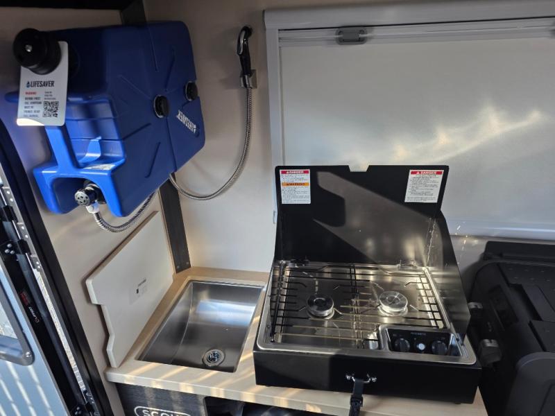 Access more terrain in this truck camper with its small size and exceptionally low base weight! Pack more gear into the 4 cu. ft. gear locker and worry less about payload capacities. The removable camper jacks help you to manage your travel weight too. Relax each night on the front bed and convertible dinette lounge with sleeper conversion as you gaze up at the stars through the moon roof with a screen and solar reflective shade. Stay clean with the Lifesaver portable 4.9 gal Jerry can with charcoal filter and spray wand, and keep your dishes clean with the stainless sink with direct exterior drain and sink cover!