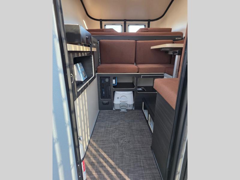 Start camping on your terms with any one of these Adventurer Manufacturing Inc. Scout truck campers! Lightweight, highly durable, and energy efficient with a flexible solar panel(s) and a Scout Unbound power system so you can go further into the woods. An aluminum exoskeleton framing and a full composite substrate construction will protect your unit all season long, and you can keep your electronics charged with the USB ports. The removable marine flooring will not only hold up through every adventure, but will also be easy to clean. Come choose the basecamp that best suits your adventurous lifestyle today!