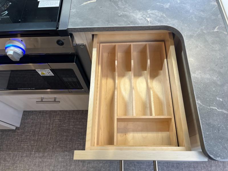 Designed for travelers who want the best of both worlds — everyday comfort and iconic Airstream durability — the Flying Cloud 25FBQ offers a well-appointed galley kitchen with quality appliances, generous storage solutions, and cozy lounge areas that adapt to your lifestyle. The private sleeping area provides restful nights, while the thoughtfully designed bathroom delivers practicality without sacrificing style. With clever storage and an intuitive layout, this travel trailer makes living on the road feel effortless and enjoyable, no matter where your journey takes you.
