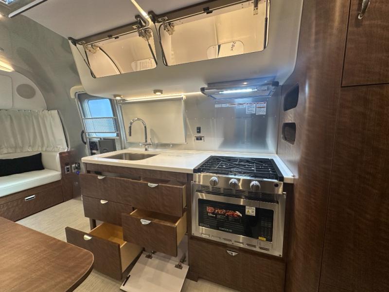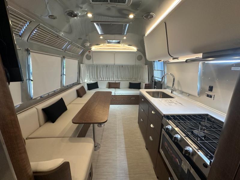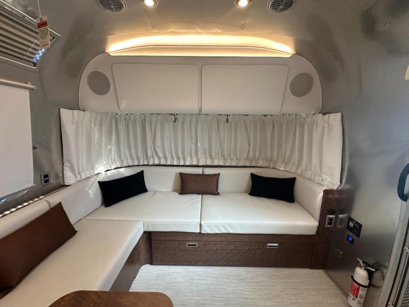 Each one of these Airstream Globetrotter travel trailers are built to last a lifetime with a structural frame and durable fabrics! European inspired and American made with a minimalist design that includes crisp, clean lines and delicate neutral colors for a sophisticated beauty with soft curves, panoramic windows, wrap-around upholstery, and backlighting. The HITCH seating upholstery has a fine woven texture, a subtle metallic tip print, and a distinctive two-tone feel, as well as durable and stain-resistant. You won't have to go far when charging your electronics thanks to the strategically placed USB and 110V outlets throughout. The QuietStream ducted A/C system can quickly cool the inside and also has a heat pump to pull ambient heat from the air. Come choose your favorite model today!