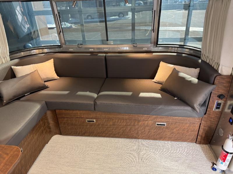 Each one of these Airstream Globetrotter travel trailers are built to last a lifetime with a structural frame and durable fabrics! European inspired and American made with a minimalist design that includes crisp, clean lines and delicate neutral colors for a sophisticated beauty with soft curves, panoramic windows, wrap-around upholstery, and backlighting. The HITCH seating upholstery has a fine woven texture, a subtle metallic tip print, and a distinctive two-tone feel, as well as durable and stain-resistant. You won't have to go far when charging your electronics thanks to the strategically placed USB and 110V outlets throughout. The QuietStream ducted A/C system can quickly cool the inside and also has a heat pump to pull ambient heat from the air. Come choose your favorite model today!