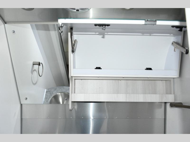 Handcrafted Marine-Grade Lite-Ply Cabinets with sliding doors and LED lighting