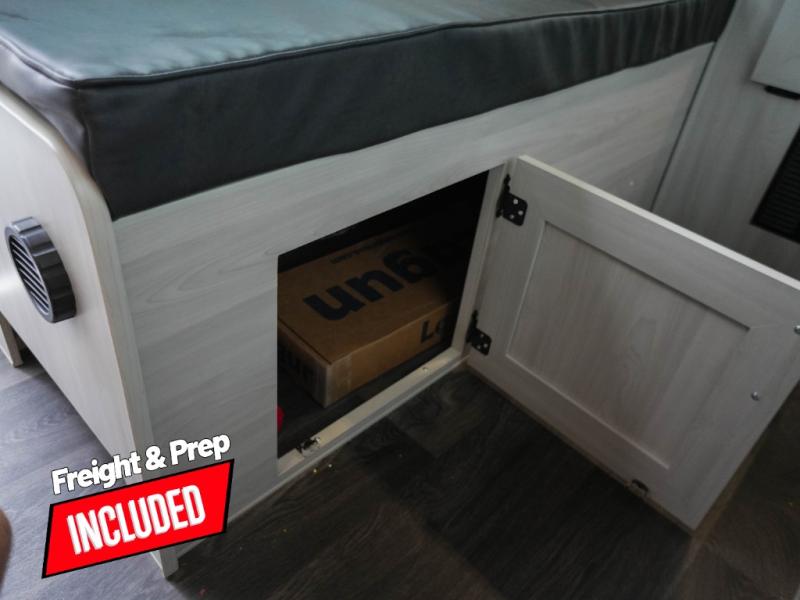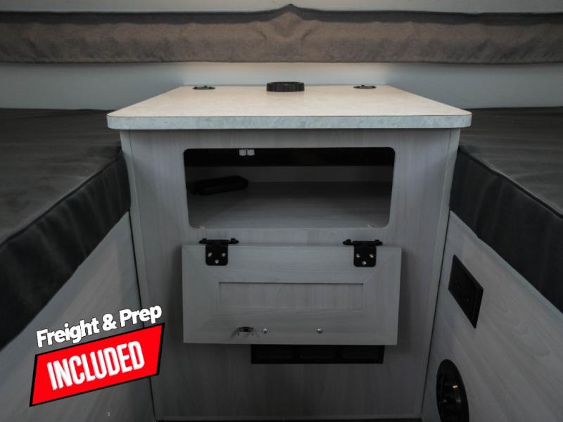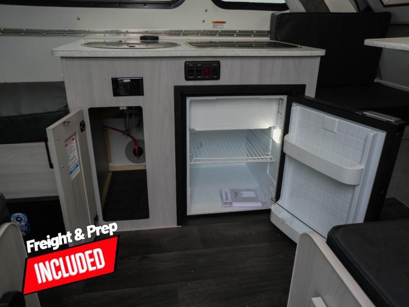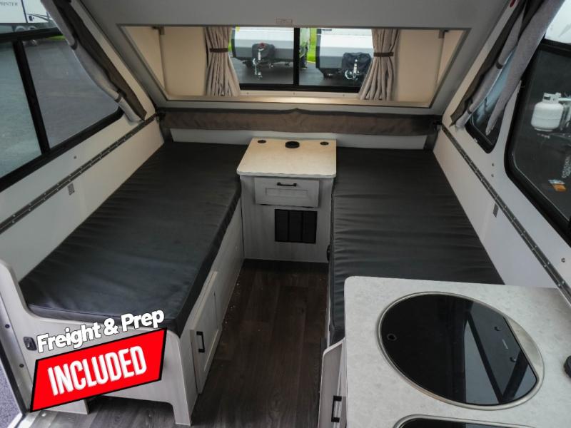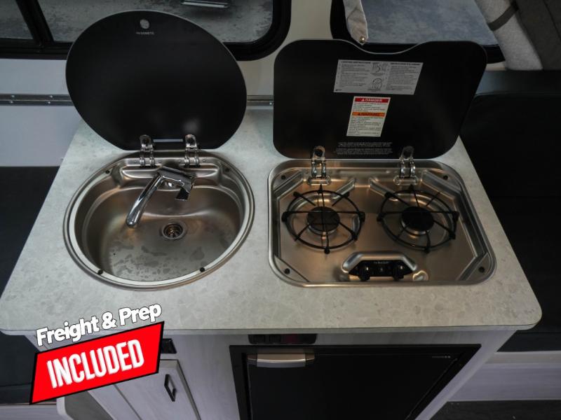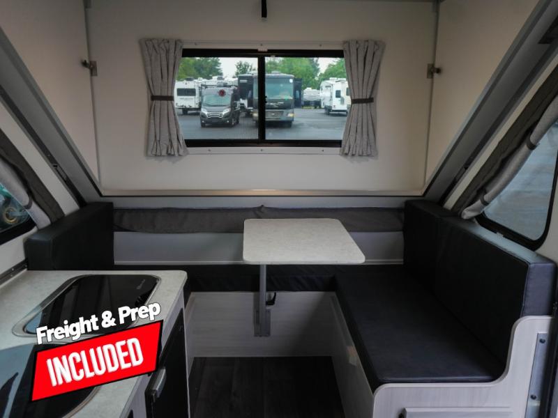 If you enjoy camping with friends or you need your own space at night, this Twin Bed model will do the trick! While two campers take the rear twin beds, the front booth dinette can convert to a 30" x 76" bed for an extra guest, and in the morning you can convert it back to dining space. Whip up breakfast on the two burner stove, or use the convenient microwave oven. There is also a sink to clean up your dishes plus a 3.1 cu. ft. 12V refrigerator to put milk and eggs back in. Don't let this cute A-Frame slip away!