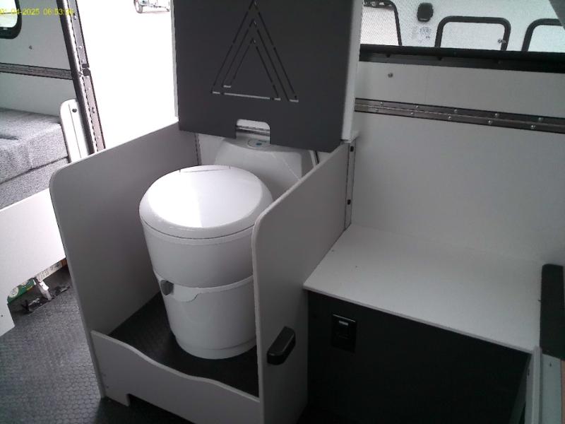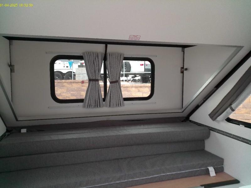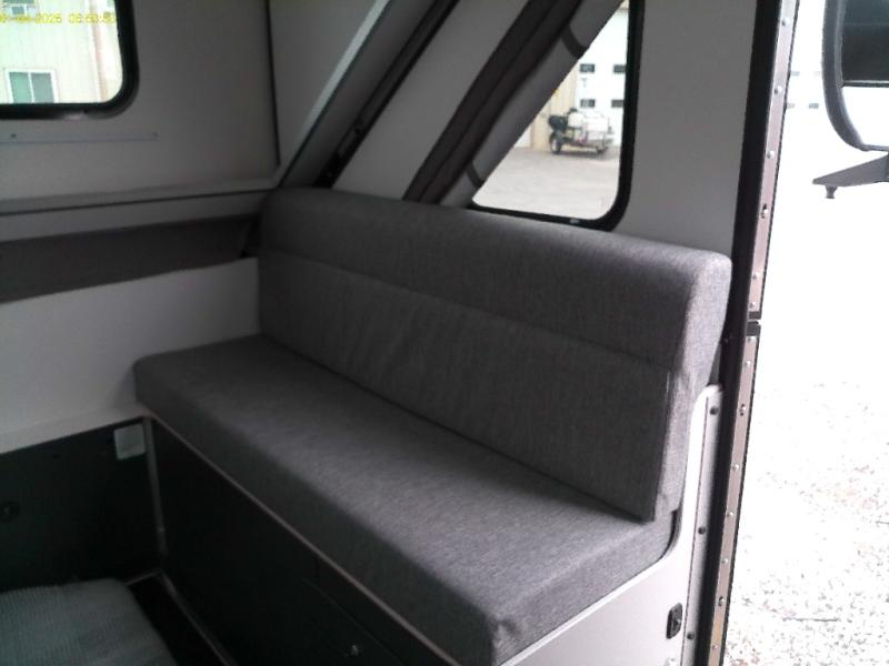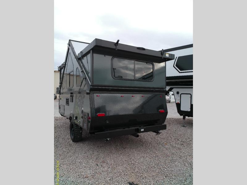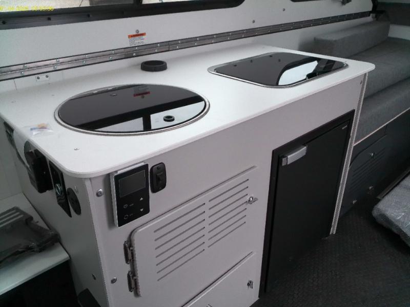 The Evolution A-frame camper by Aliner is coming to you with residential features and solid construction materials. You'll love the slate gray exterior, aluminum wheels, and the Azdel composite panels to help prolong the life of your camper. There are LED running lights, exterior baggage doors, and four stabilizer jacks to help keep your camper secure. You will also appreciate the keyless entry, the dual LP tanks with a cover, and the 200-watt solar panel on the front dormer for some off-grid power. The lift kit and 15" off-road tires add 3" to the height, allowing you to explore more roads, and you'll find many interior comforts to make you feel right at home!