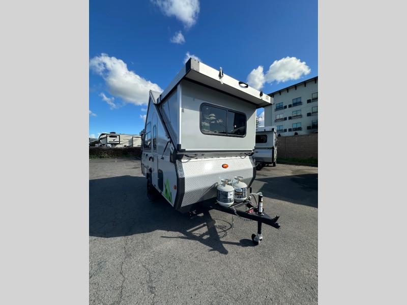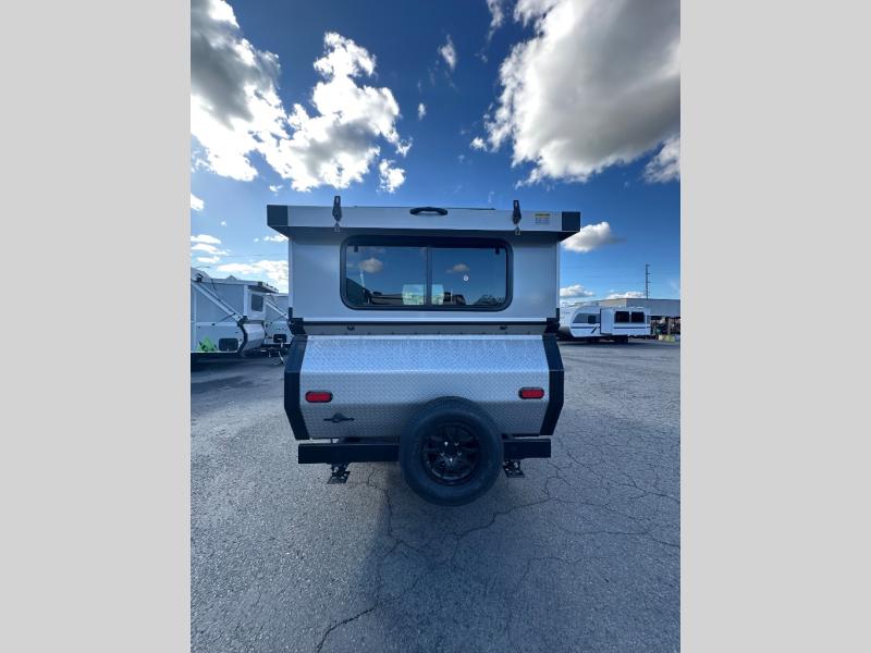 The LXE A-frame camper by Aliner construction includes Azdel lightweight, and vacuum bonded fiberglass panels for durability. Some extra features include an outside shower, LED running lights, additional corner windows, and an exterior propane connection if you want to hook up a grill. Inside, there are real hardwood cabinet doors, LED lights, plus three interior electrical outlets to keep the electronics charged. An optional 185-watt solar panel can be added on the front dormer for off-grid capabilities, and you can choose the optional lift kit and 15" off-road tires for better clearance!