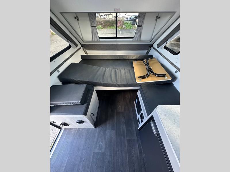 Versatile, comfortable, and convenient indoor living while camping can be found throughout this camper! The shower with a cassette toilet offers convenience and a place to clean up each morning, the 3.1 cu. ft. 12V refrigerator offers cold storage, and the microwave plus two burner stove allows you to make warm meals. Eat your meals while sitting on the sofa bed or at the dinette with two seats. And the sofa bed converts into an 74" x 76" bed for a great night's rest!