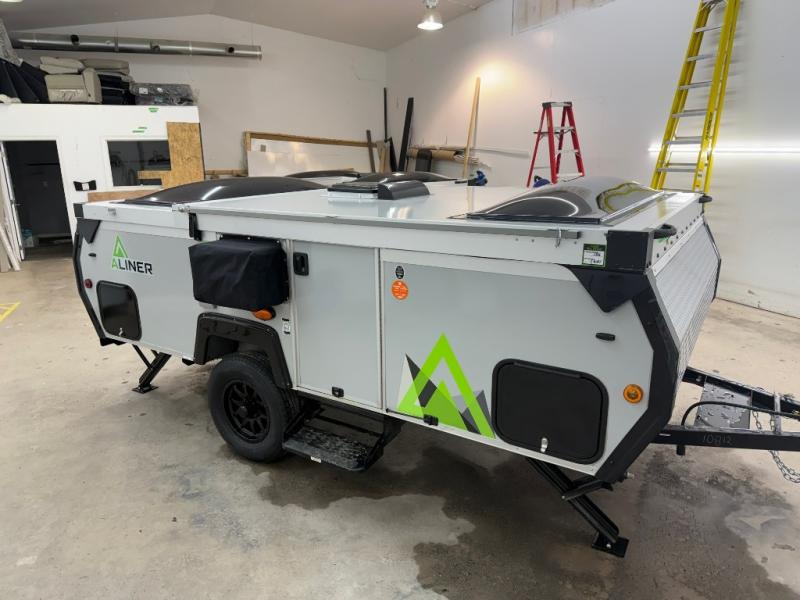 The Scout A-frame camper by Aliner is constructed with a 5" tubular steel frame, Azdel composite roof/sidewalls, and Lexan skylights for more natural lighting. The Dexter rubber torsion axle, 10" electric brakes, and aluminum wheels will make it easier than ever to tow, and there are four stabilizer jacks for added stability at the campground. You'll find two baggage doors to keep your gear stored away, and there is a bike rack receiver if you plan to hit the trails. The optional dormers (front or rear) (hard or soft) will give you the ability to add head space to your camper, and you may even like to add the optional lift kit and 15" off-road tires for better clearance!