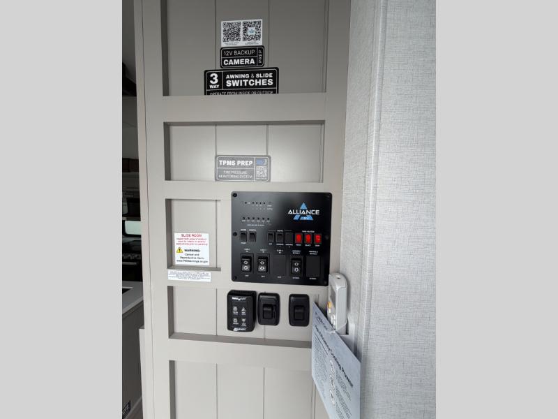 A benchmark chassis creates a space saver upper deck with each one of these Avenue All-Access fifth wheels by Alliance RV! The 101 in. wide-body construction gives you more room to walk around and the flush slide out floors throughout prevent any tripping. There are composite sidewalls inside and out, and PVC roof for extreme durability. You are sure to love no carpet throughout making each Avenue All-Access easy to clean and allergen free, not to mention pet friendly. You can maximize your space throughout with innovative storage solutions like the hidden storage behind the TV, inside the end tables, ottoman, and dinette chairs. These units also include the OTG Solar Package with a 200 watt solar panel, 15 amp MPPT charger, multiple outlets, and more to keep you powered up!