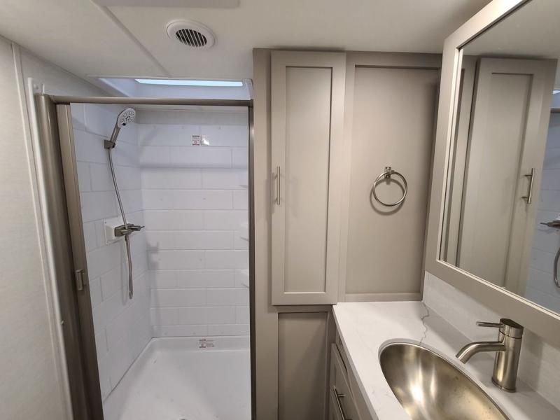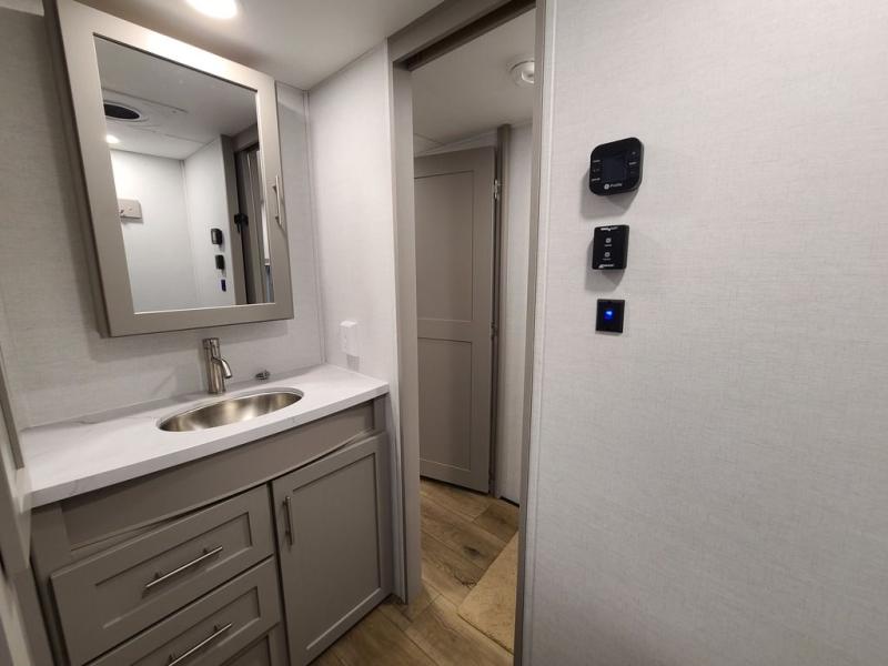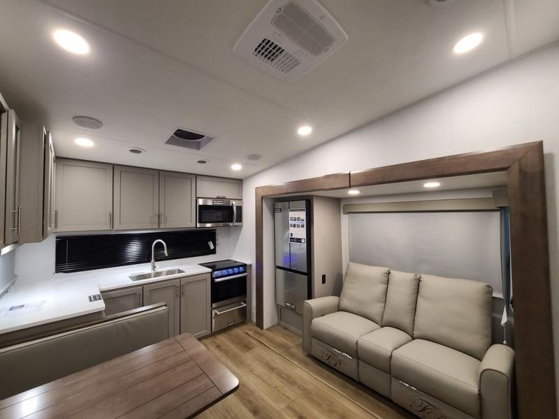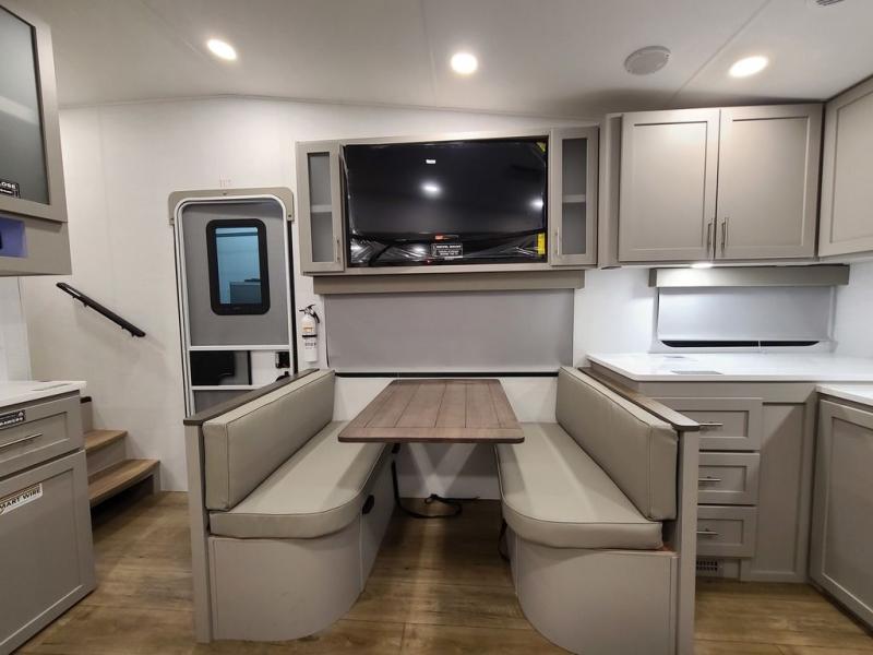 A benchmark chassis creates a space saver upper deck with each one of these Avenue All-Access fifth wheels by Alliance RV! The 101 in. wide-body construction gives you more room to walk around and the flush slide out floors throughout prevent any tripping. There are composite sidewalls inside and out, and PVC roof for extreme durability. You are sure to love no carpet throughout making each Avenue All-Access easy to clean and allergen free, not to mention pet friendly. You can maximize your space throughout with innovative storage solutions like the hidden storage behind the TV, inside the end tables, ottoman, and dinette chairs. These units also include the OTG Solar Package with a 200 watt solar panel, 15 amp MPPT charger, multiple outlets, and more to keep you powered up!