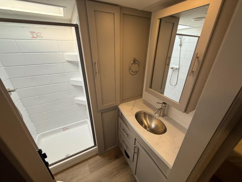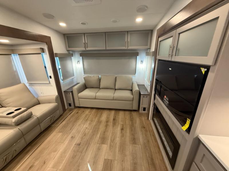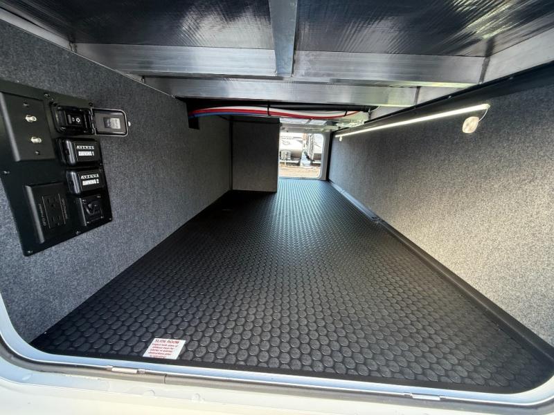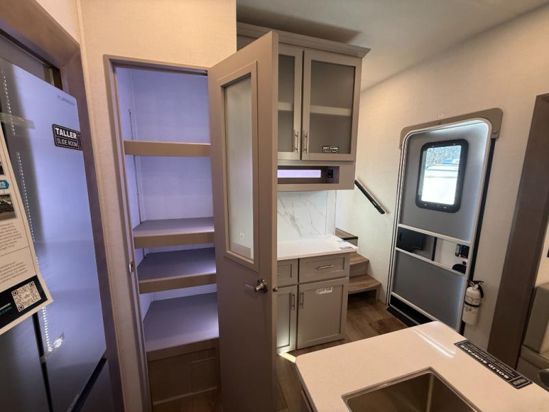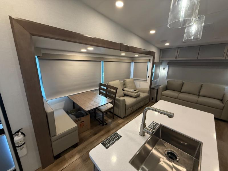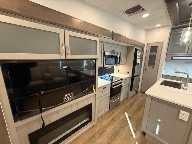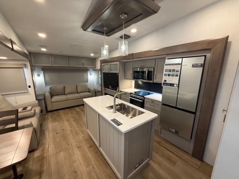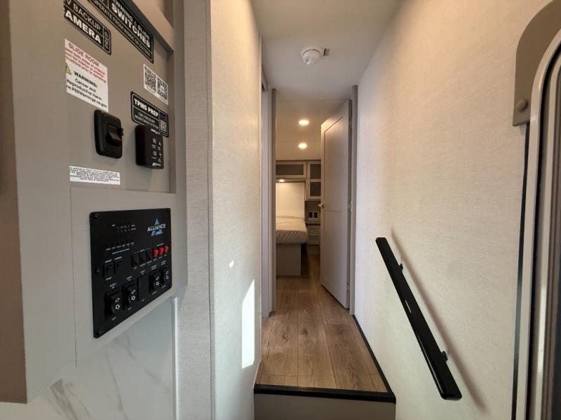 A benchmark chassis creates a space saver upper deck with each one of these Avenue All-Access fifth wheels by Alliance RV! The 101 in. wide-body construction gives you more room to walk around and the flush slide out floors throughout prevent any tripping. There are composite sidewalls inside and out, and PVC roof for extreme durability. You are sure to love no carpet throughout making each Avenue All-Access easy to clean and allergen free, not to mention pet friendly. You can maximize your space throughout with innovative storage solutions like the hidden storage behind the TV, inside the end tables, ottoman, and dinette chairs. These units also include the OTG Solar Package with a 200 watt solar panel, 15 amp MPPT charger, multiple outlets, and more to keep you powered up!