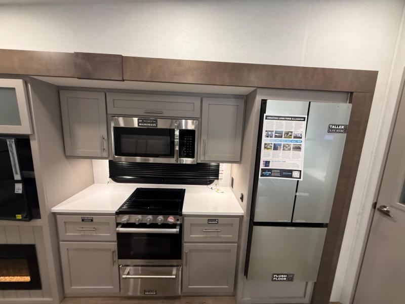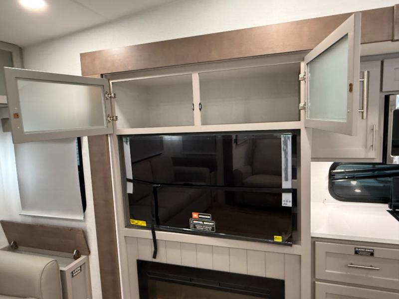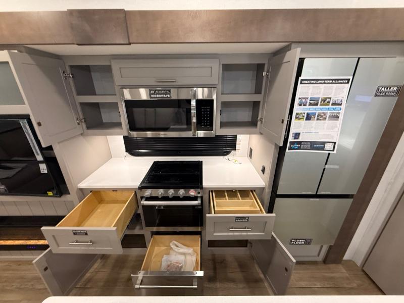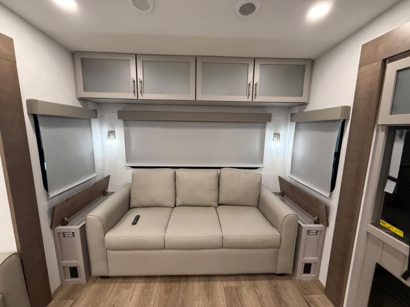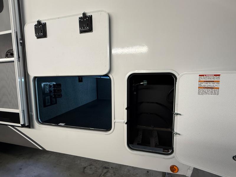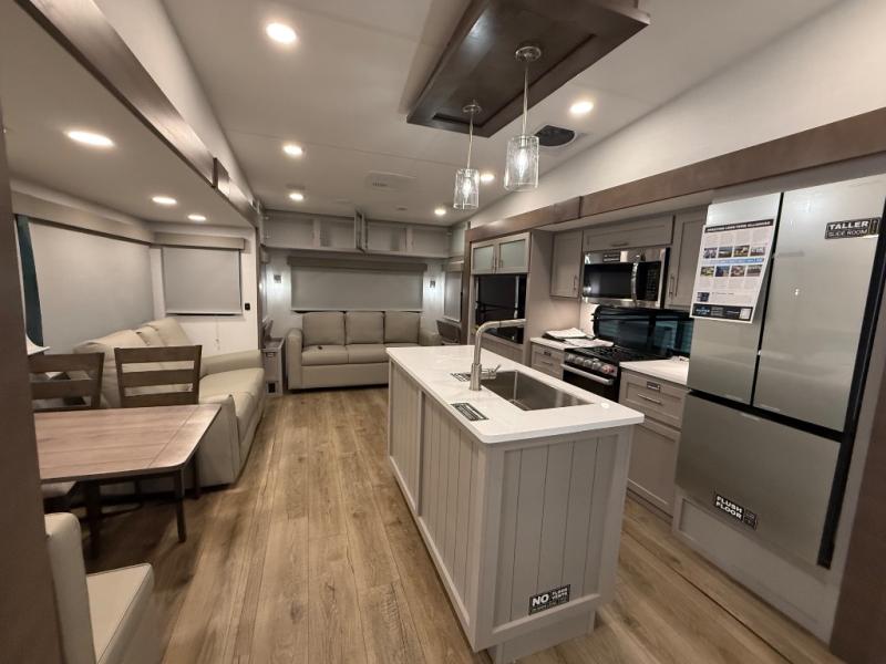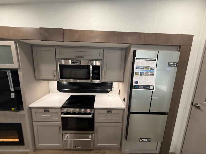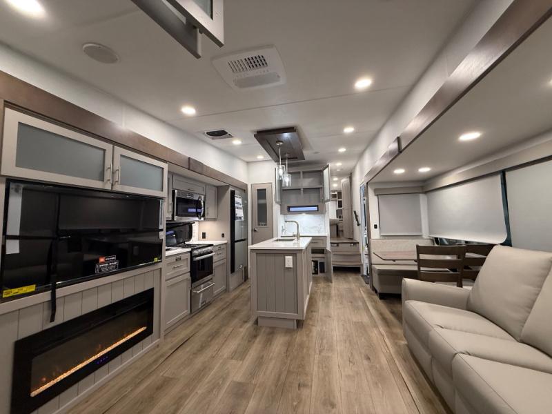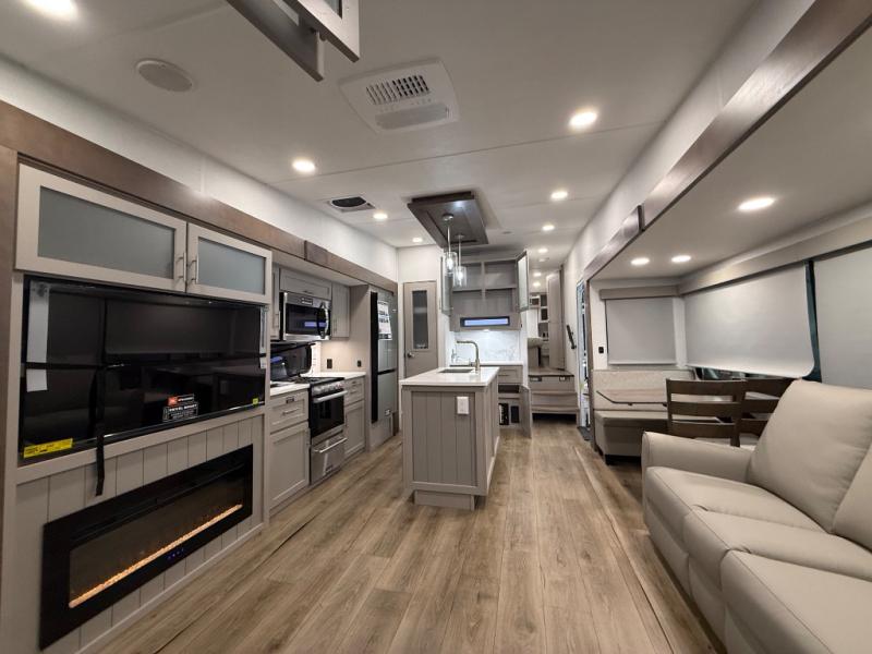 A benchmark chassis creates a space saver upper deck with each one of these Avenue All-Access fifth wheels by Alliance RV! The 101 in. wide-body construction gives you more room to walk around and the flush slide out floors throughout prevent any tripping. There are composite sidewalls inside and out, and PVC roof for extreme durability. You are sure to love no carpet throughout making each Avenue All-Access easy to clean and allergen free, not to mention pet friendly. You can maximize your space throughout with innovative storage solutions like the hidden storage behind the TV, inside the end tables, ottoman, and dinette chairs. These units also include the OTG Solar Package with a 200 watt solar panel, 15 amp MPPT charger, multiple outlets, and more to keep you powered up!