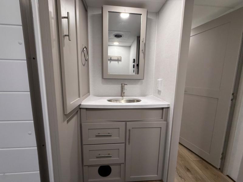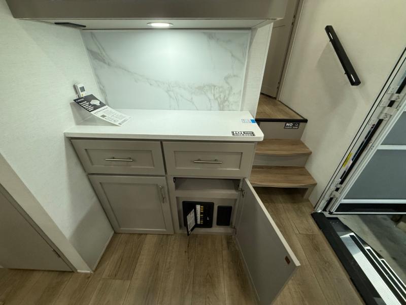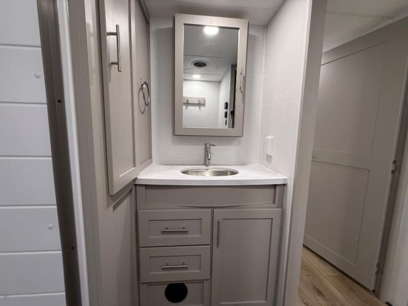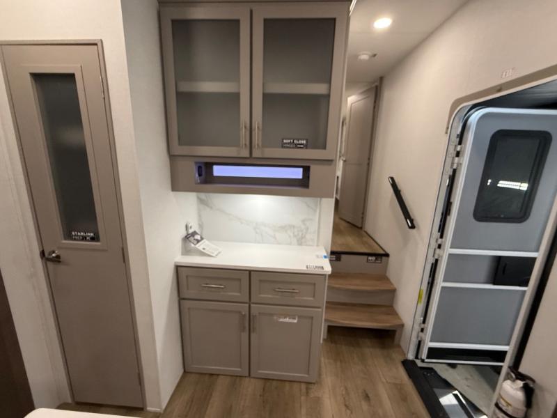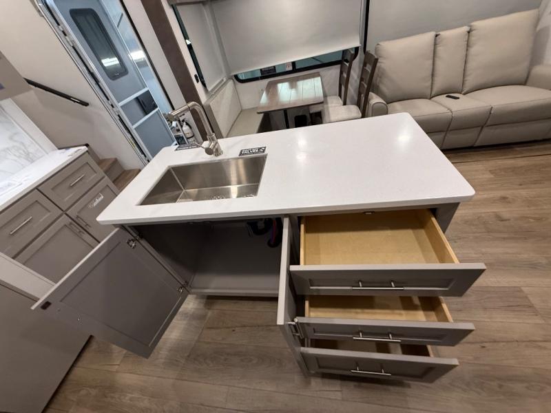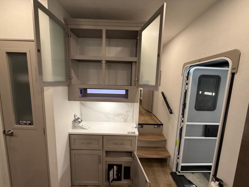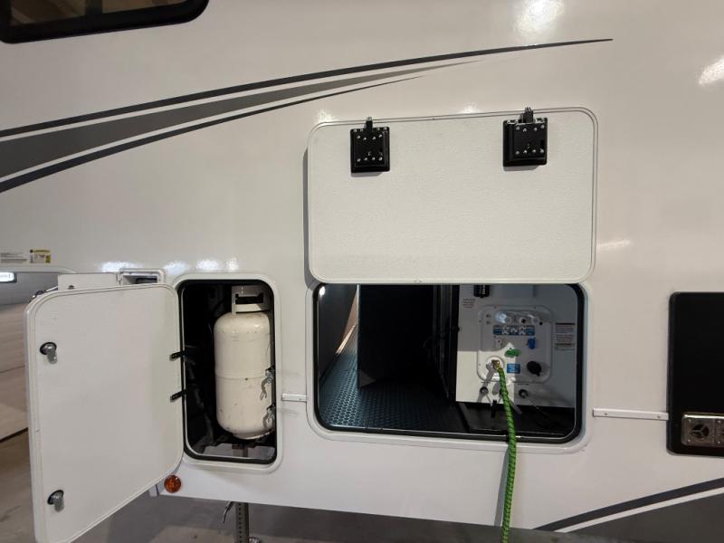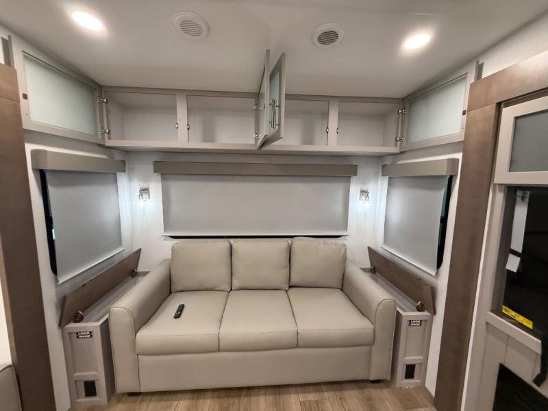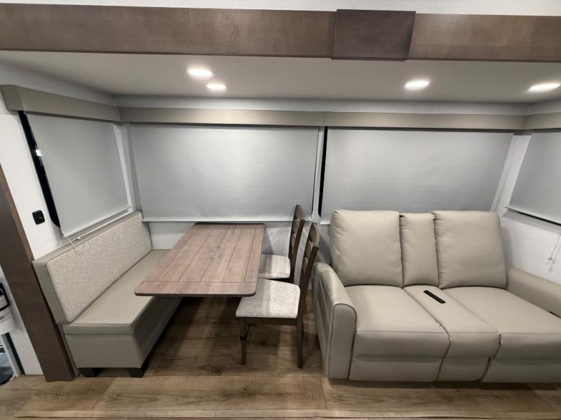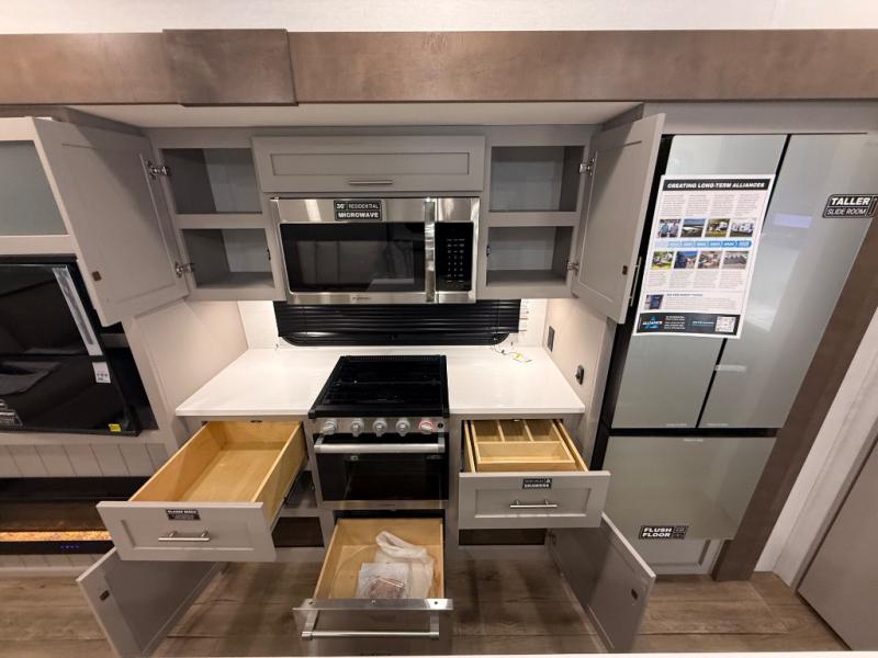 A benchmark chassis creates a space saver upper deck with each one of these Avenue All-Access fifth wheels by Alliance RV! The 101 in. wide-body construction gives you more room to walk around and the flush slide out floors throughout prevent any tripping. There are composite sidewalls inside and out, and PVC roof for extreme durability. You are sure to love no carpet throughout making each Avenue All-Access easy to clean and allergen free, not to mention pet friendly. You can maximize your space throughout with innovative storage solutions like the hidden storage behind the TV, inside the end tables, ottoman, and dinette chairs. These units also include the OTG Solar Package with a 200 watt solar panel, 15 amp MPPT charger, multiple outlets, and more to keep you powered up!