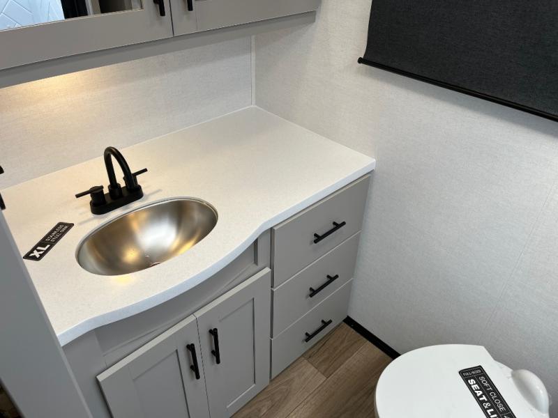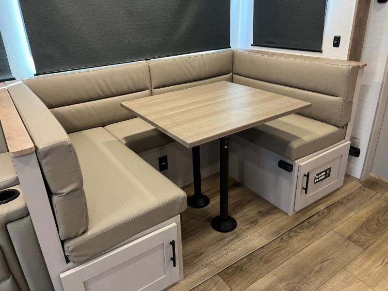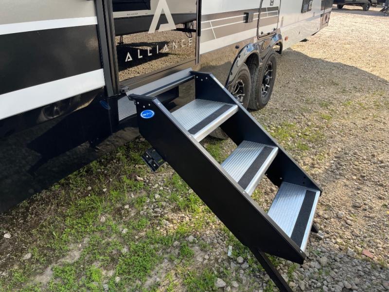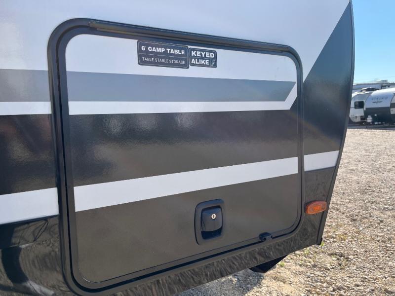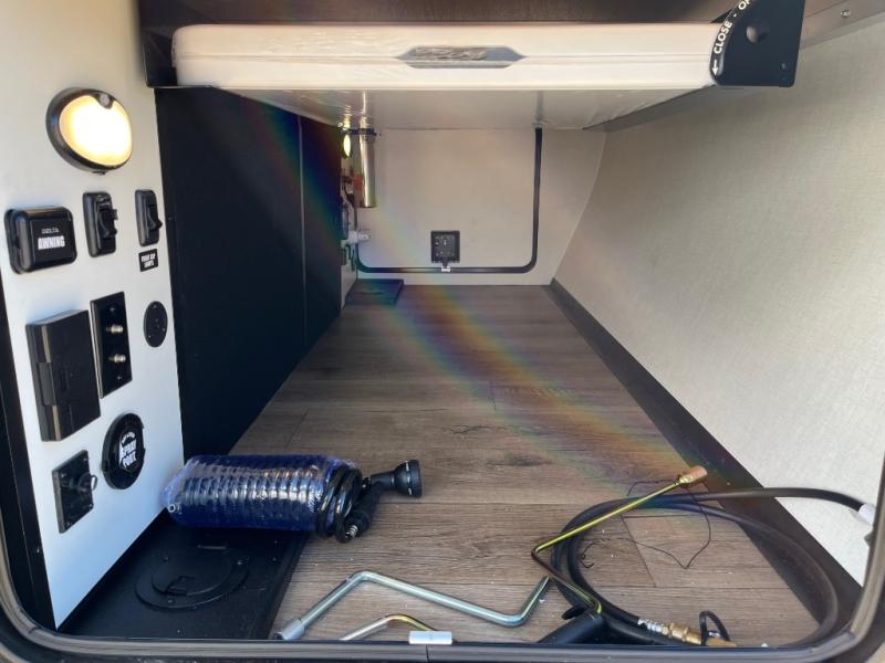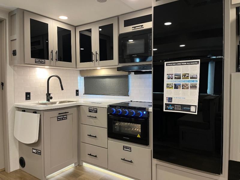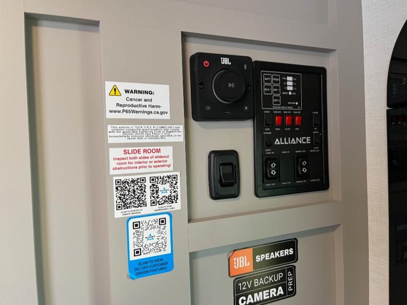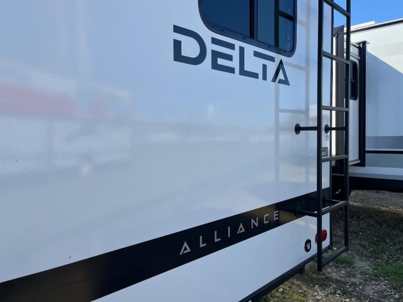 Form and function work together with every one of these Alliance RV Delta travel trailers! They are built with a walk-on roof with a seamless PVC roof covering, Mylar reinforced exterior seals, and a heated and enclosed underbelly to protect your unit. The commercial grade vinyl flooring will be easy to clean, and the oversized atrium windows throughout let in plenty of natural sunlight. With 62 cu. ft. of drop frame pass-through storage, you can bring along all of your essential camping gear plus it has USB charging for more convenience. There are many at home interior conveniences including a Bluetooth speaker, USB charging throughout, and even a pull-out kitchen trash can. Come find your favorite model today!