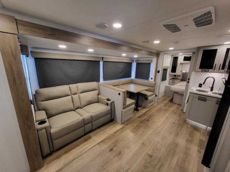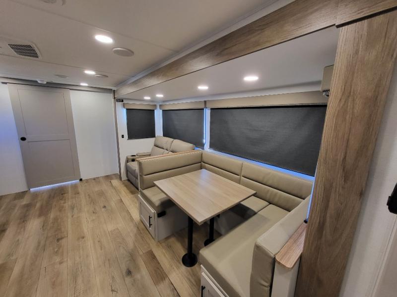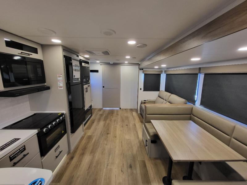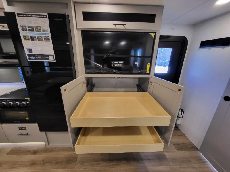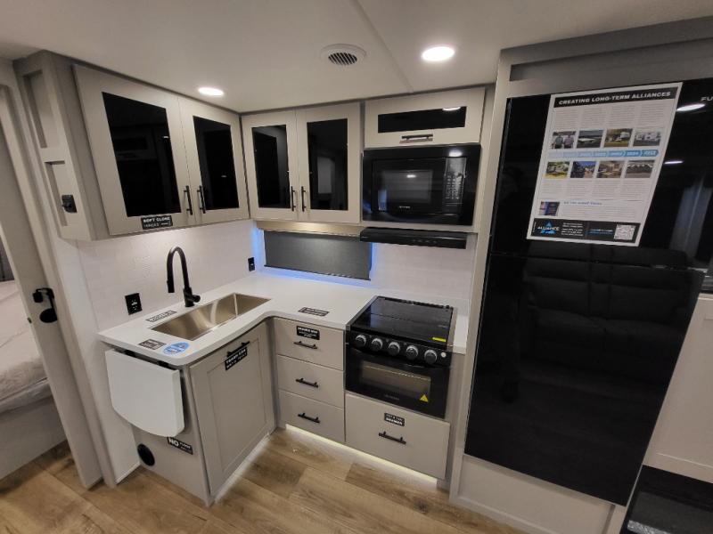 Form and function work together with every one of these Alliance RV Delta travel trailers! They are built with a walk-on roof with a seamless PVC roof covering, Mylar reinforced exterior seals, and a heated and enclosed underbelly to protect your unit. The commercial grade vinyl flooring will be easy to clean, and the oversized atrium windows throughout let in plenty of natural sunlight. With 62 cu. ft. of drop frame pass-through storage, you can bring along all of your essential camping gear plus it has USB charging for more convenience. There are many at home interior conveniences including a Bluetooth speaker, USB charging throughout, and even a pull-out kitchen trash can. Come find your favorite model today!