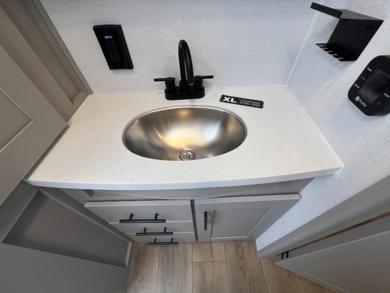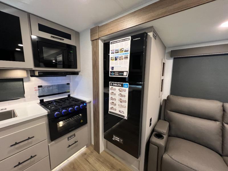 Form and function work together with every one of these Alliance RV Delta travel trailers! They are built with a walk-on roof with a seamless PVC roof covering, Mylar reinforced exterior seals, and a heated and enclosed underbelly to protect your unit. The commercial grade vinyl flooring will be easy to clean, and the oversized atrium windows throughout let in plenty of natural sunlight. With 62 cu. ft. of drop frame pass-through storage, you can bring along all of your essential camping gear plus it has USB charging for more convenience. There are many at home interior conveniences including a Bluetooth speaker, USB charging throughout, and even a pull-out kitchen trash can. Come find your favorite model today!