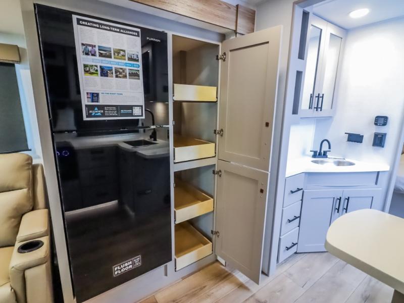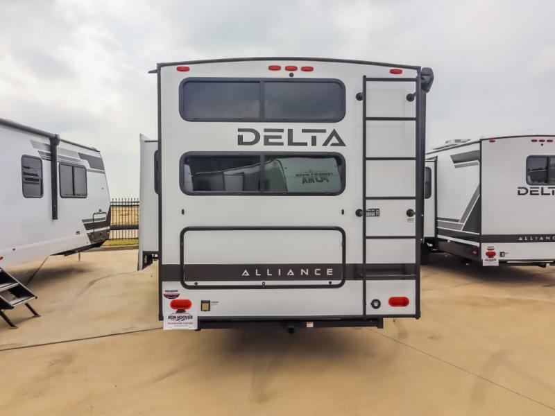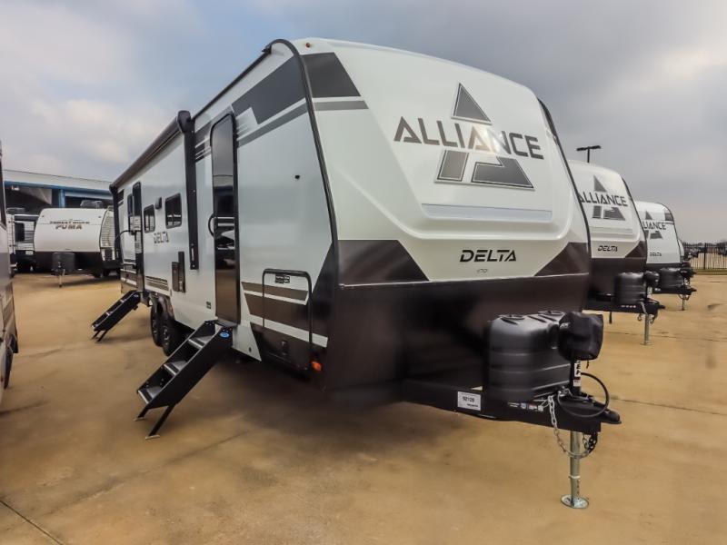 Form and function work together with every one of these Alliance RV Delta travel trailers! They are built with a walk-on roof with a seamless PVC roof covering, Mylar reinforced exterior seals, and a heated and enclosed underbelly to protect your unit. The commercial grade vinyl flooring will be easy to clean, and the oversized atrium windows throughout let in plenty of natural sunlight. With 62 cu. ft. of drop frame pass-through storage, you can bring along all of your essential camping gear plus it has USB charging for more convenience. There are many at home interior conveniences including a Bluetooth speaker, USB charging throughout, and even a pull-out kitchen trash can. Come find your favorite model today!