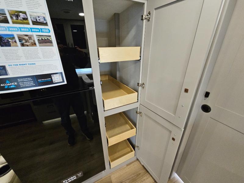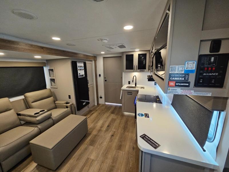 Form and function work together with every one of these Alliance RV Delta travel trailers! They are built with a walk-on roof with a seamless PVC roof covering, Mylar reinforced exterior seals, and a heated and enclosed underbelly to protect your unit. The commercial grade vinyl flooring will be easy to clean, and the oversized atrium windows throughout let in plenty of natural sunlight. With 62 cu. ft. of drop frame pass-through storage, you can bring along all of your essential camping gear plus it has USB charging for more convenience. There are many at home interior conveniences including a Bluetooth speaker, USB charging throughout, and even a pull-out kitchen trash can. Come find your favorite model today!