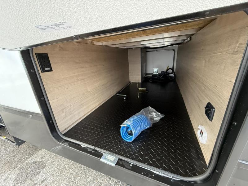 Form and function work together with every one of these Alliance RV Delta travel trailers! They are built with a walk-on roof with a seamless PVC roof covering, Mylar reinforced exterior seals, and a heated and enclosed underbelly to protect your unit. The commercial grade vinyl flooring will be easy to clean, and the oversized atrium windows throughout let in plenty of natural sunlight. With 62 cu. ft. of drop frame pass-through storage, you can bring along all of your essential camping gear plus it has USB charging for more convenience. There are many at home interior conveniences including a Bluetooth speaker, USB charging throughout, and even a pull-out kitchen trash can. Come find your favorite model today!