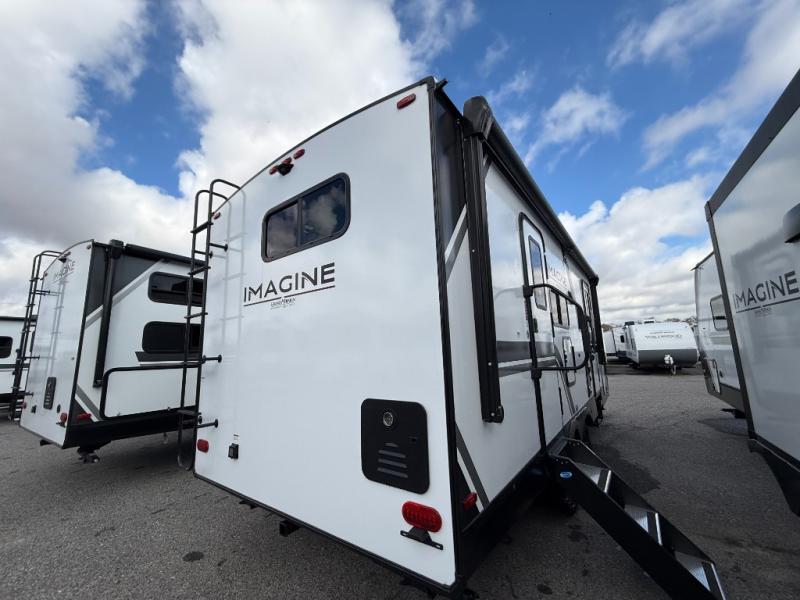 Start camping in luxury with this travel trailer! Prepare your best home cooked meals in the rear kitchen with the three burner cooktop, 10 cu. ft. 12V refrigerator, tip-out trash can, and even two bar stools to enjoy your morning coffee while reading the newspaper. Freshen up in the full bathroom with the 30" x 36" shower or head outside to relax under one of the two awnings. There is even an outdoor griddle/grill underneath one of the awnings to protect you while you grill up some juicy burgers, plus an outside 32" TV. The front private bedroom has a queen bed for you to lay your head on at night and has wardrobe nightstands for your items. Relax in true comfort each night on one of the two furniture spots in front of the entertainment center with a 50" TV with a fireplace below it!