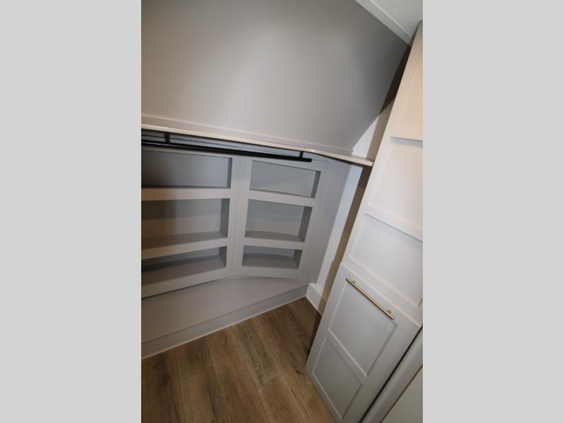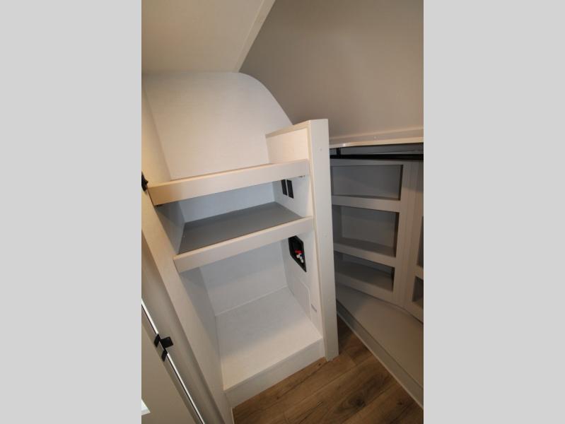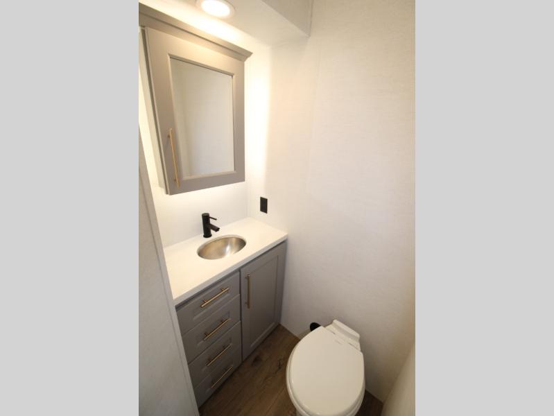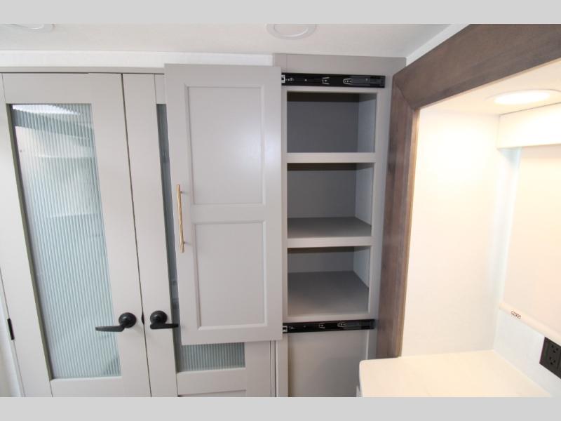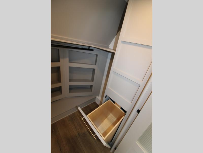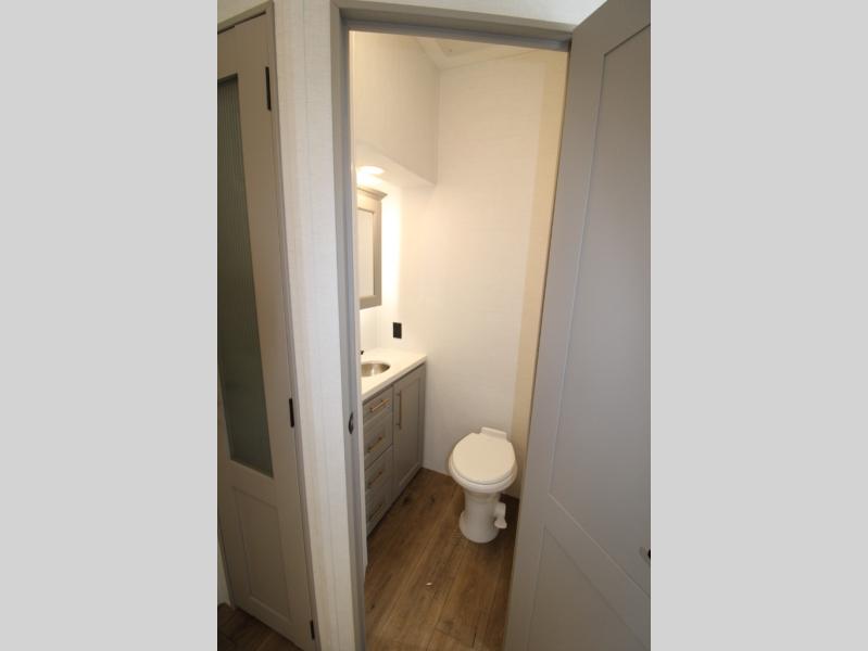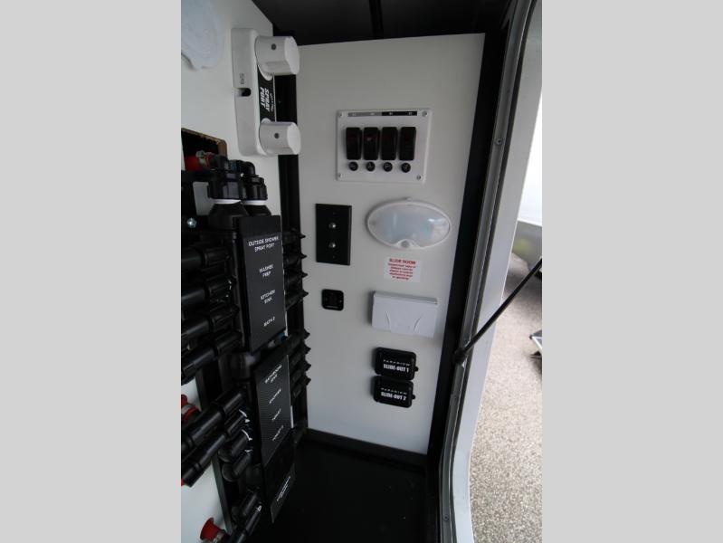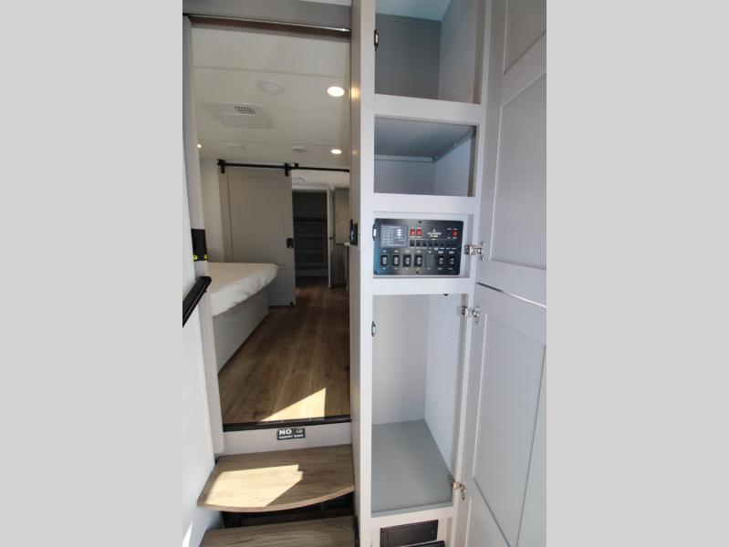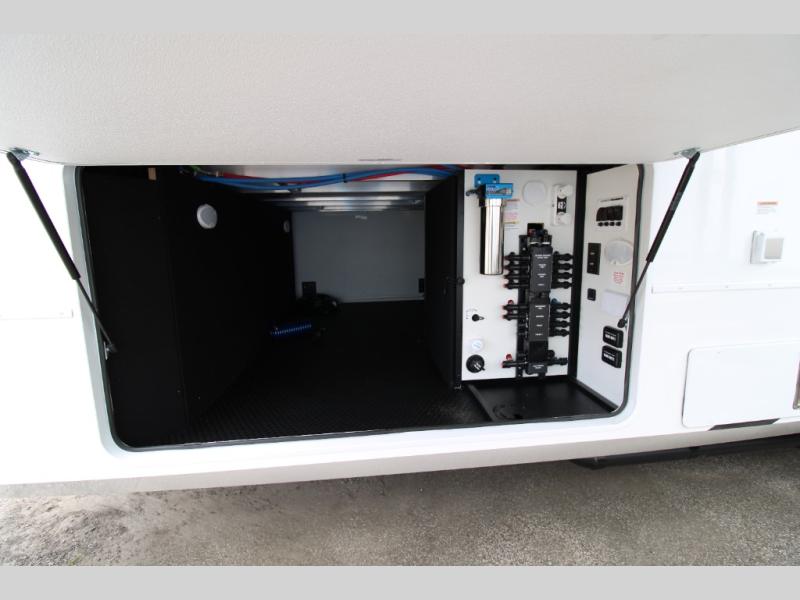 Whether you decide to be a full-timer or a long-trip traveler, this Paradigm offers so many comforts and conveniences you will love! The large full bathroom might be the reason you decide to be a new owner because you will have a large 61" x 30" shower to get cleaned up in, linen storage, and a walk-in closet with a hamper, shelves, and a space prepped for an optional washer/dryer. The bedroom allows you to sleep like a king and gives you extra floor space with the two slides, and there is storage in the flip-top dresser and under the seat, plus you can watch the Smart TV. The space saving sliding doors offer style as well. The cook will love all the residential appliances, including a residential refrigerator. The kitchen island gives you a large sink and dishwasher prep also. The half bath is super convenient just like the entry sitting bench/coat rack and closet. And you can relax on the sleeper sofa, dual recliner love seat, or swivel table and desk.