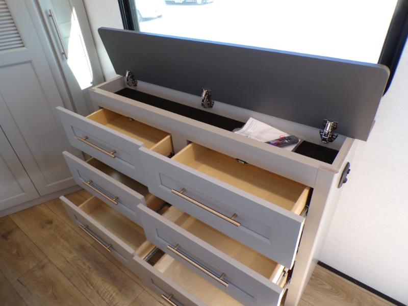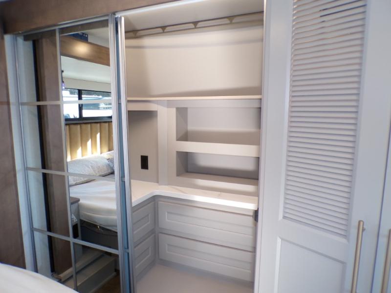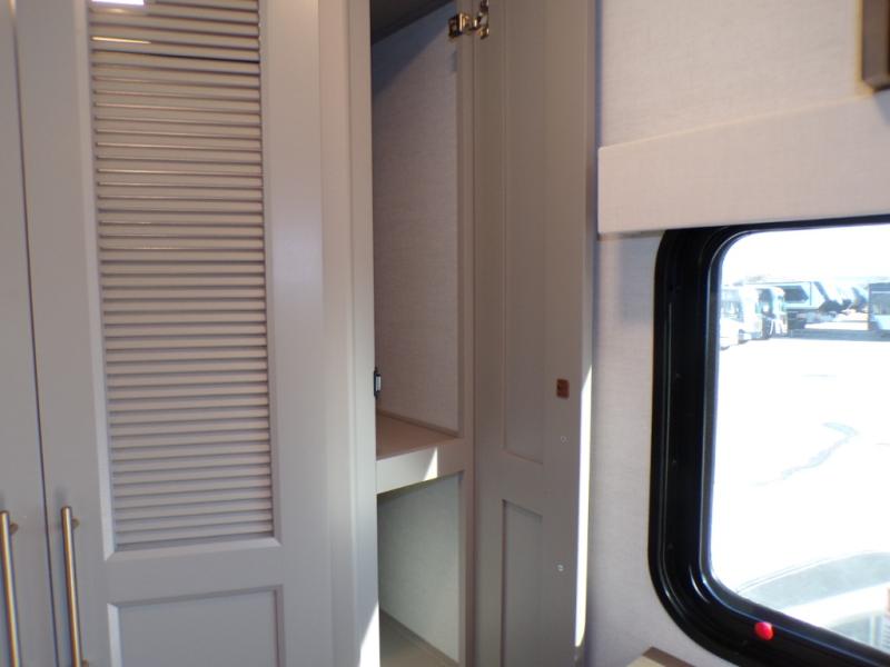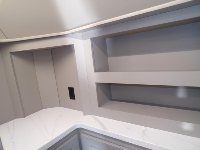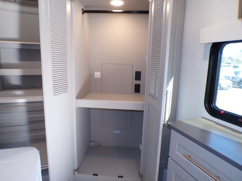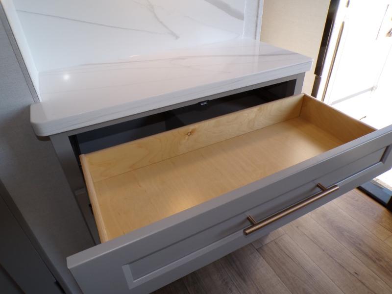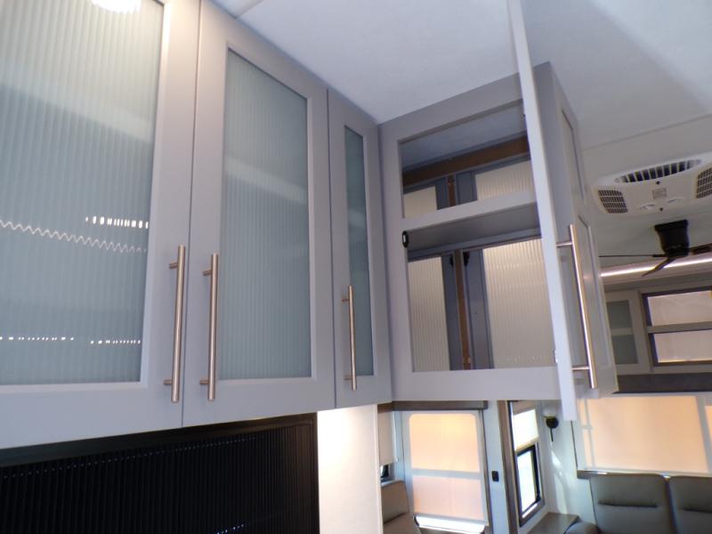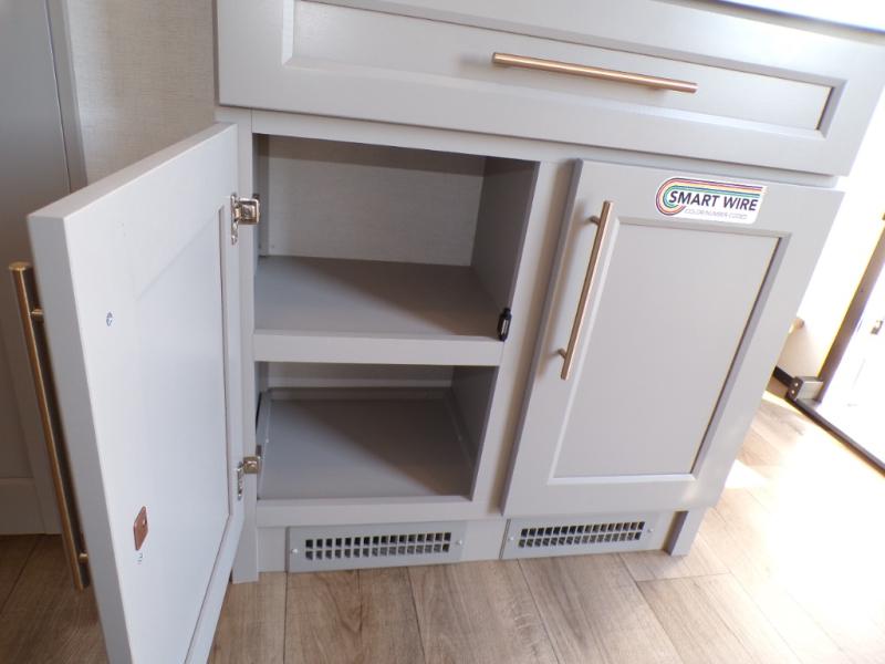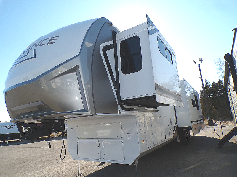 The Paradigm fifth wheels by Alliance RV are functional, high-quality, and luxurious for an unforgettable camping experience. There are three A/C units and a 40K BTU furnace to keep you comfortable year around, and you'll appreciate additional convenient amenities, like the all-in-one enclosed/heated utility center and the color coded and numbered wiring. A Helux Series coil spring pin box comes standard for hassle-free towing, along with Curt 8,000 lb. axles. You'll love the kitchen with its LG solid surface countertops and Lusso range, plus there is LED motion lighting in the pantry and a Maxx fan with a rain sensor to keep everything fresh when making dinner. Each model also includes an HD Smart TV in the living room and bedroom. And of course there are a variety of options you can choose from to further customize your fifth wheel; dual pane windows, Super Solar Plus, slide out awning toppers, and generator prep or a generator to name a few!