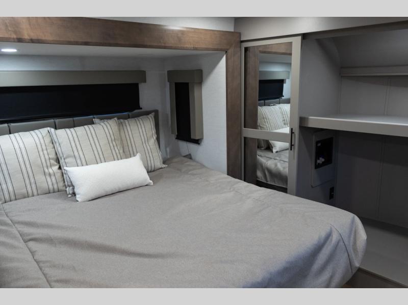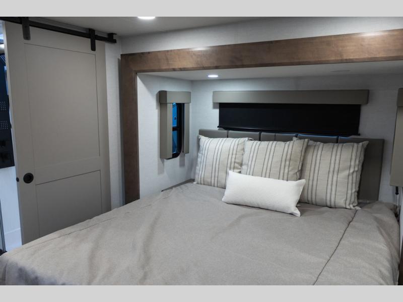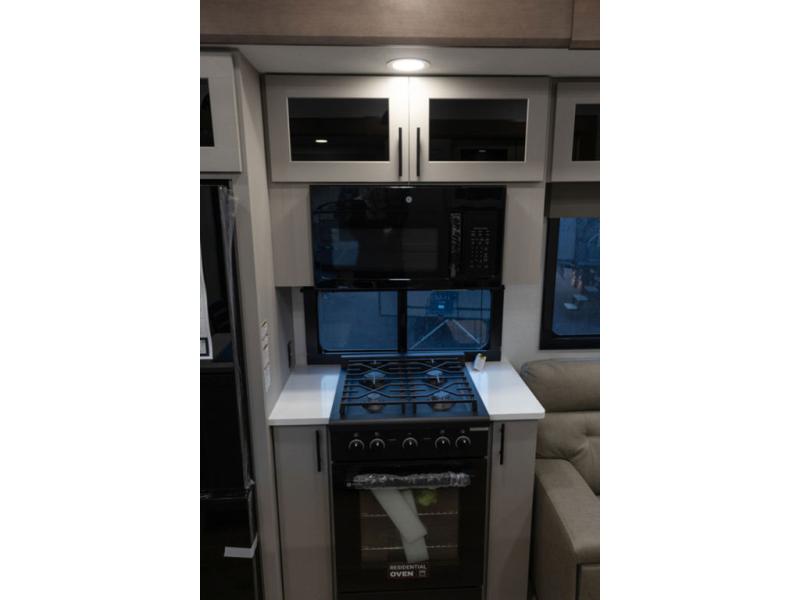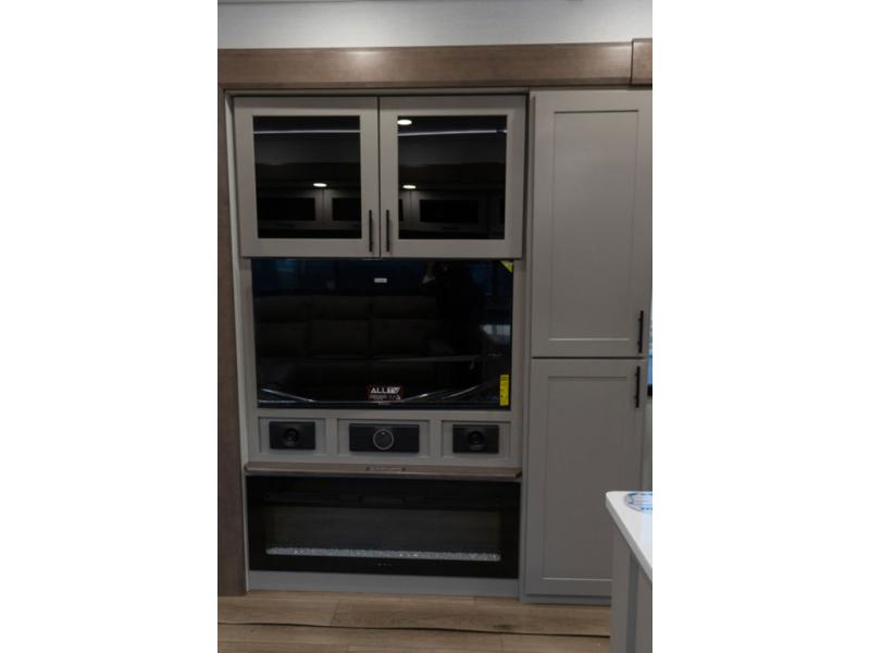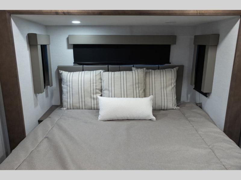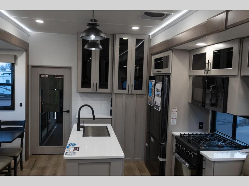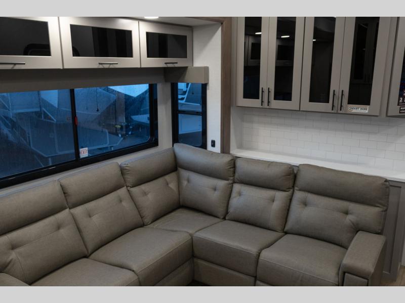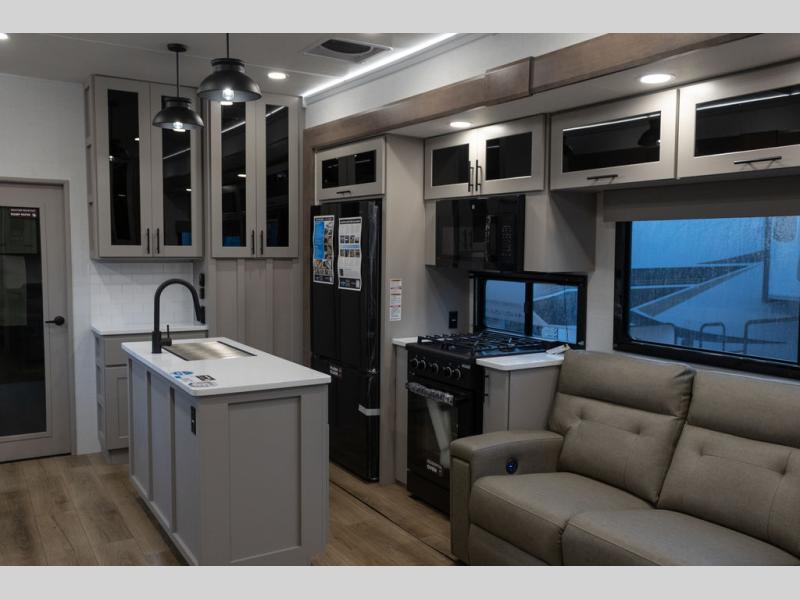 You can bring your toys with you wherever you go with any one of these Alliance RV Valor toy hauler fifth wheels! They are adventure-ready with a quality build from the walk on roof with seamless PVC roof covering to the commercial grade vinyl flooring and MorRyde CRE3000 suspension system. The Performance Running Gear package comes with a 101" wide-body benchmark chassis platform, 7,000 lb. Dexter axles, and a space enhancing drop frame storage compartment to pack in all your riding gear. You can even go off-gridding thanks to the Off the Grid Pack that has two 400-watt solar panels, generator prep, a 60-amp charge controller, and a 100-amp hour lithium iron phosphate battery. Some of the interior comforts you will enjoy are the hardwood cabinet doors and drawers, solid surface kitchen countertops, and commercial grade vinyl flooring with no carpet to make clean up a breeze. The Valor toy haulers are also the Masters of 12 Volt with USB charging station throughout, a 12V refrigerator, and more 12-volt features to make camping hassle-free!