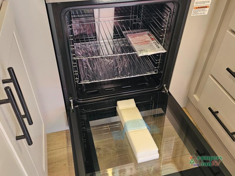 The whole gang will love camping in this toy hauler with a 14' garage for your toys and gear. Once you have arrived at your destination, you can set up the HappiJac roll-over sofas with a queen bed above them, and also a loft which opens to the garage area as well. A half bath is also available off the garage which is an added convenience for those sleeping in this converted area, and for those coming in off the trail so that they do not have to track all through the main unit to use the bathroom. The chef can prepare great meals for their hungry crew with the fully equipped kitchen including a four-burner cooktop, a 12V refrigerator, large sink, and plenty of countertop prep space. The rest of the gang can be relaxing on the large L-shaped sofa slide watching the 50" HDTV and enjoying the fireplace or playing a game of cards at the dining table with four chairs. The front private bedroom features a king bed slide for more interior space, a flip top dresser for all of your belongings, and a front wardrobe with washer and dryer prep, plus it has an entrance into the dual entry bathroom!