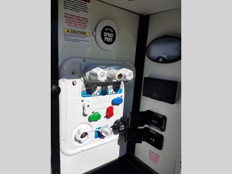 Load up the dirt bikes, pack your bags, and head to the campground in this spacious toy hauler. Once your toys are unloaded using the weather resistant ramp door, relax on the HappiJac roll-over sofas with a folding table in between, and this area can become your guests' bedroom at night since there is a drop-down queen bed, a half bath, plus an additional 30" x 72" bunk/loft bed. You will have the front bedroom all to yourselves that includes a king bed with an optional queen bed plus a wardrobe slide out to keep your space tidy. Everyone can meet in the main living area/kitchen for movie night with the HDTV and sofa slide out, while the chef of makes dinner on the three burner cooktop. There is also a hutch and pantry for storage and a kitchen island for more counter space!