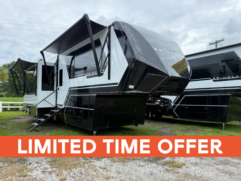 The Brinkley Model G 3950 is the ultimate luxury toy hauler fifth wheel engineered for adventure and designed with real-world usability in mind. This spacious rig features three A/Cs for maximum climate control, upgraded 7K axles with disc brakes for top-tier stopping power, and a stylish L-shaped sofa for premium comfort and relaxation.