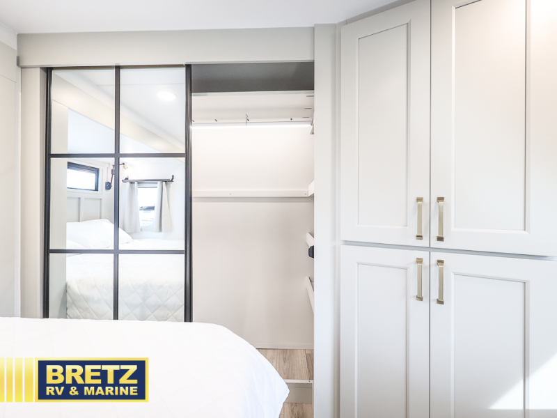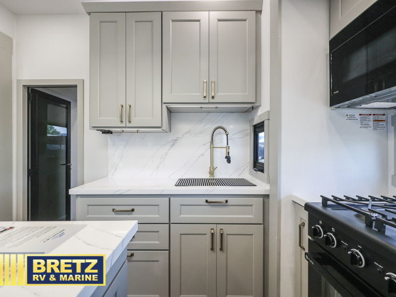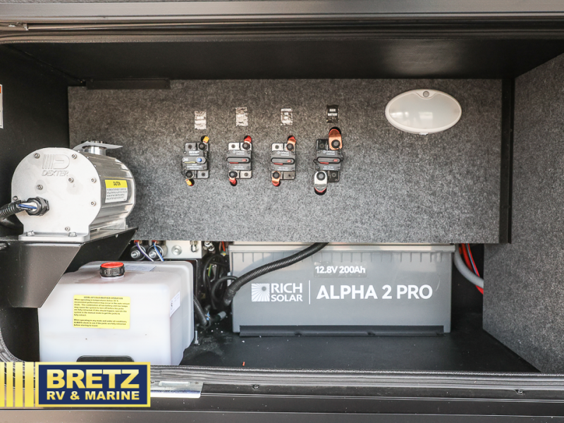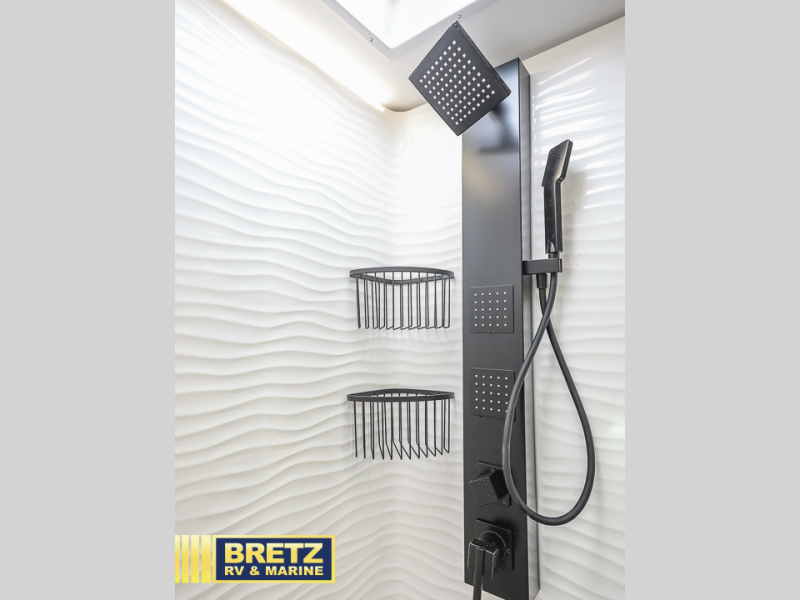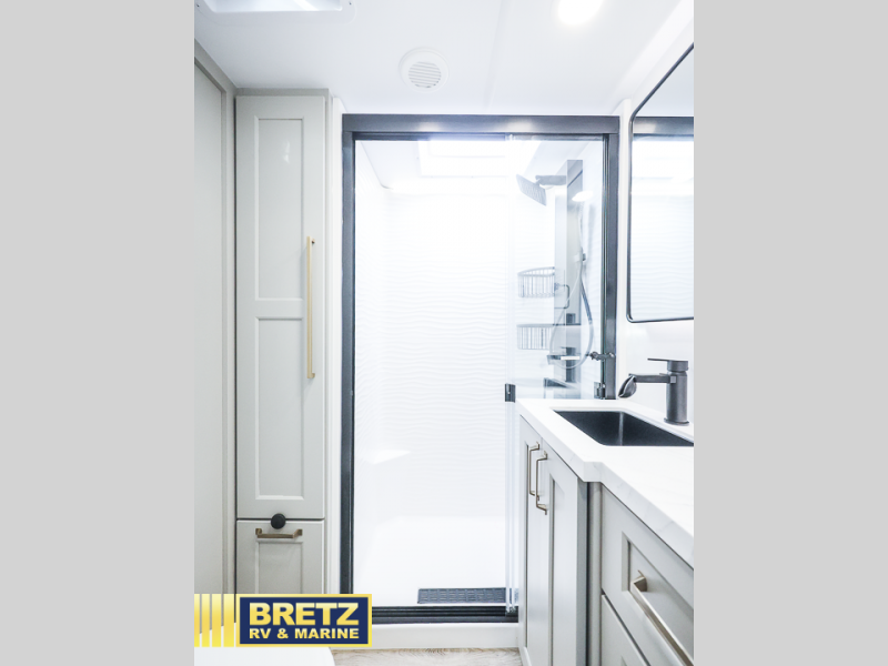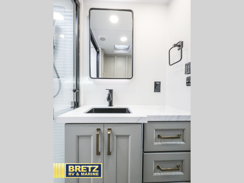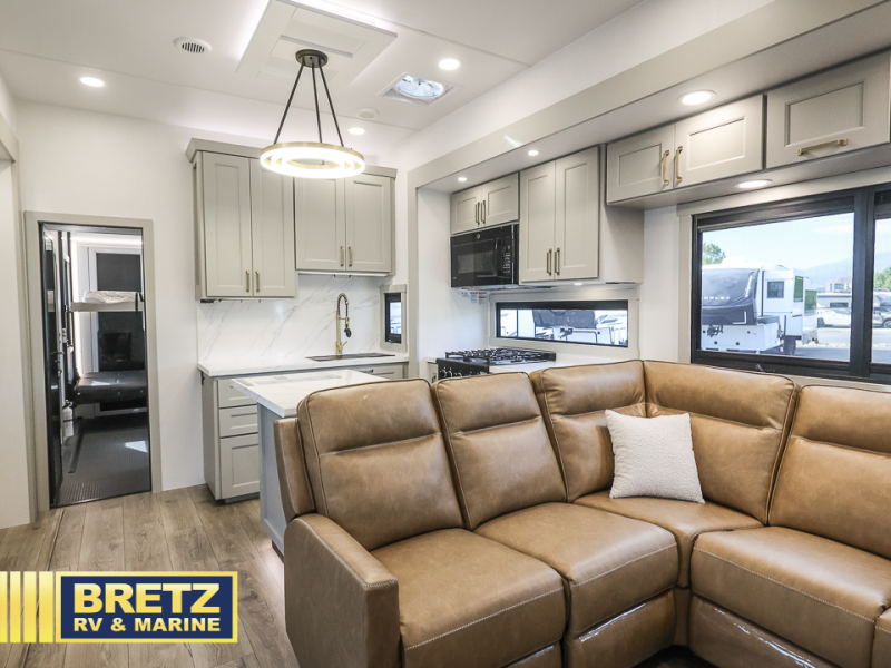 With any Model G toy hauler fifth wheel by Brinkley you will enjoy luxurious amenities, tons of storage space, and innovative features that have been developed and tested in the real world. Durable construction includes an industry leading PDI process, an industry best insulation package, and reinforced and walkable slide roofs. Some of the exterior features you'll find are a 3-way pass-through with a multi-functional flip-up bulkhead wall, under I-beam storage, a MAX-Vision reverse lighting system, and a low-maintenance roof to name a few. A Rockford Fosgate audio system comes standard, along with a OneControl app system that lets you control your fifth wheel's functions right from your mobile device. You will find the solar system with a designated storage area to be ultra convenient, plus there is a FlexPower 5500 with a dual fuel inverter generator for all your power needs. Head inside to find a residential interior with Brinkley's CraftSense wood trim construction, floating entrance steps, integrated window screens and insulated blackout blinds, and residential solid surface countertops plus backsplash. You will also enjoy the neon shower lighting and recessed medicine cabinets in the bath, plus motion activated LED bed lights and dual bedside outlets in the bedroom. Choose a Model G toy hauler fifth wheel to experience all the luxury it has to offer!