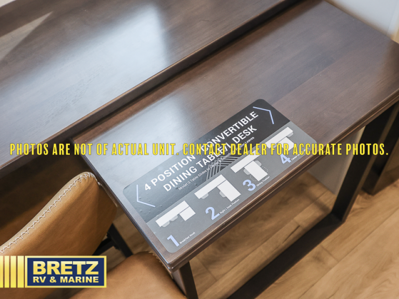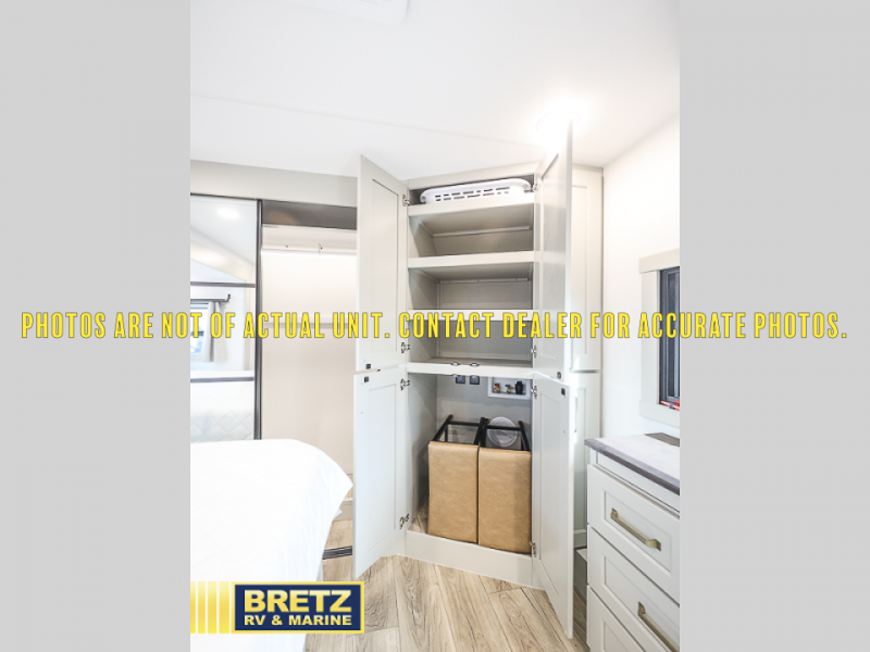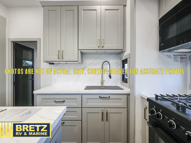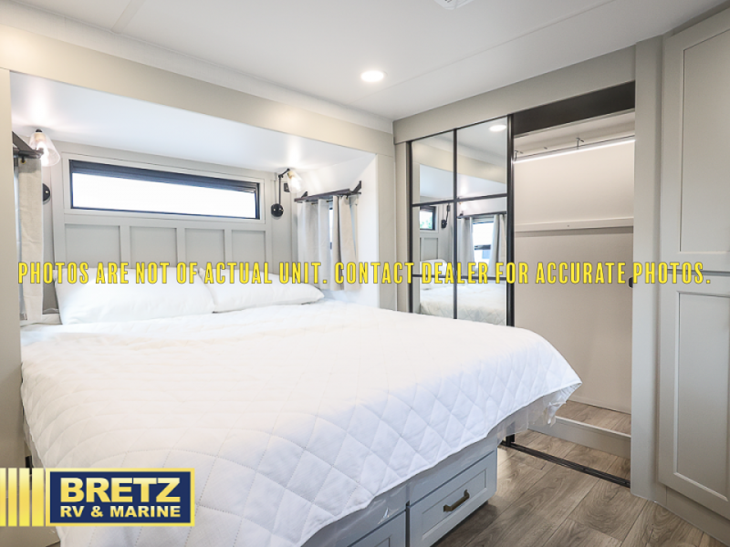Whether you use this toy hauler to haul your favorite ride-on toys or as a mobile office, you're sure to love every inch of it! The 14' separate garage includes a Fold-N-Stow table and independent dual sofas, along with a full bath and a loft/storage with a twin bed for more sleeping space. The middle kitchen is every chef's dream with its GE appliances, kitchen island, and convenient features, such as pull-out trash bins and a cutting board, a pull-down knife rack and utensil tray, and a pull-out pantry/utility closet! Right next to the kitchen is the living room with a L-sofa with four modes, a 65" Phillips Smart TV and a fireplace, plus a convertible dining table/L-desk where you can dine or get some work done. You'll love the second full bath up front close to the private bedroom, and here, you'll find a king bed slide out, under-bed storage drawers and motion lights, a walk-in closet with cordless vacuum prep, and a sliding dresser top with hidden storage for valuables. There is also washer and dryer prep in the bedroom and garage, making this toy hauler full-time capable!