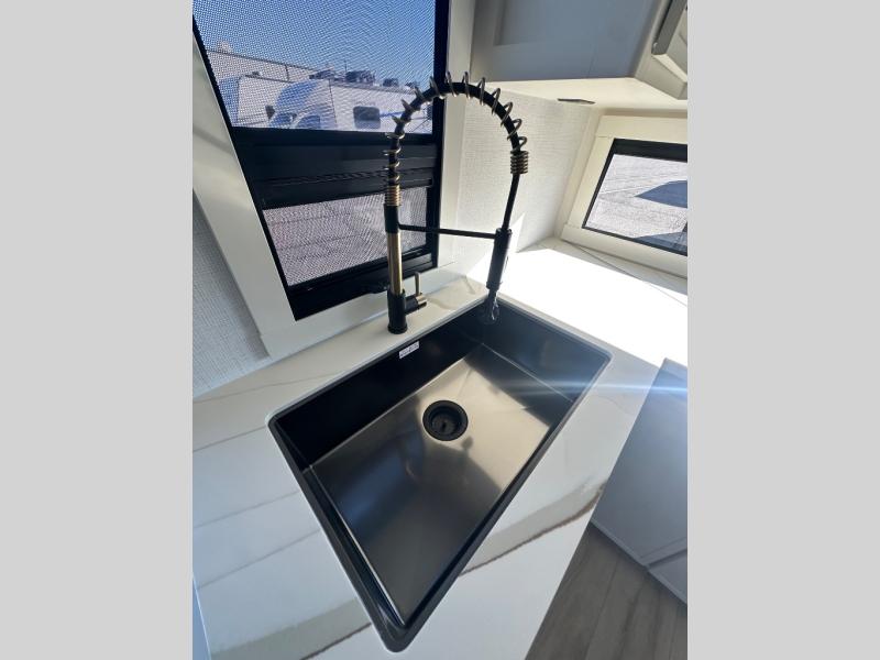The lightweight Model I travel trailer by Brinkley is the perfect choice for those looking for an easy tow and at-home comforts! There is a drop-frame chassis, high-performance Road Armor suspension equalizer system, and Demco EZ Latch trailer coupler that automatically latches when dropped onto a hitch ball without the need of a safety pin. Additional exterior features include square Euro frameless windows, automotive-grade paint, full-width LED strip lighting in the pass-thru, and a pet & property security campside tie-down to keep your gear and furry friends safe. Inside, you'll be wowed by Brinkley's CraftSense wood trim construction, residential solid surface kitchen countertops, dimmable bedroom lights, and marine-grade neon LED shower lighting to name a few stand-out features!