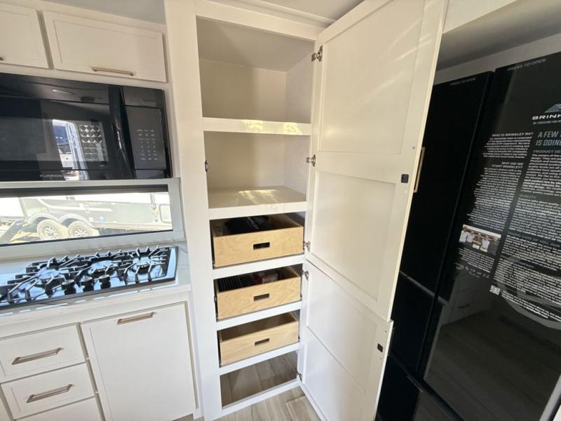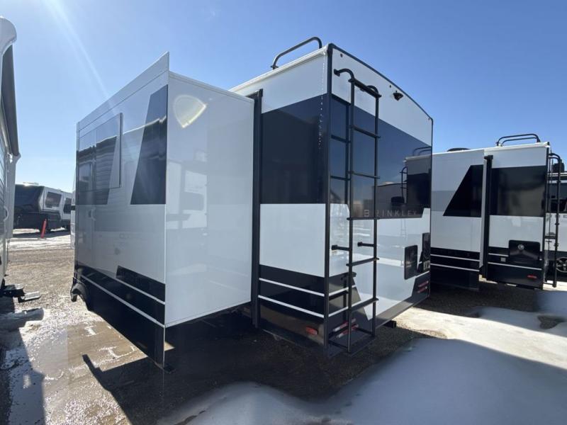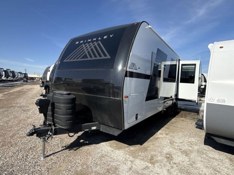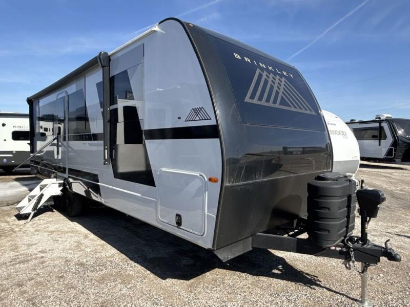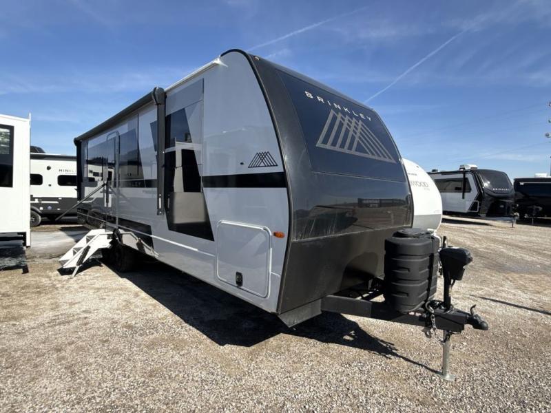 The lightweight Model I travel trailer by Brinkley is the perfect choice for those looking for an easy tow and at-home comforts! There is a drop-frame chassis, high-performance Road Armor suspension equalizer system, and Demco EZ Latch trailer coupler that automatically latches when dropped onto a hitch ball without the need of a safety pin. Additional exterior features include square Euro frameless windows, automotive-grade paint, full-width LED strip lighting in the pass-thru, and a pet & property security campside tie-down to keep your gear and furry friends safe. Inside, you'll be wowed by Brinkley's CraftSense wood trim construction, residential solid surface kitchen countertops, dimmable bedroom lights, and marine-grade neon LED shower lighting to name a few stand-out features!