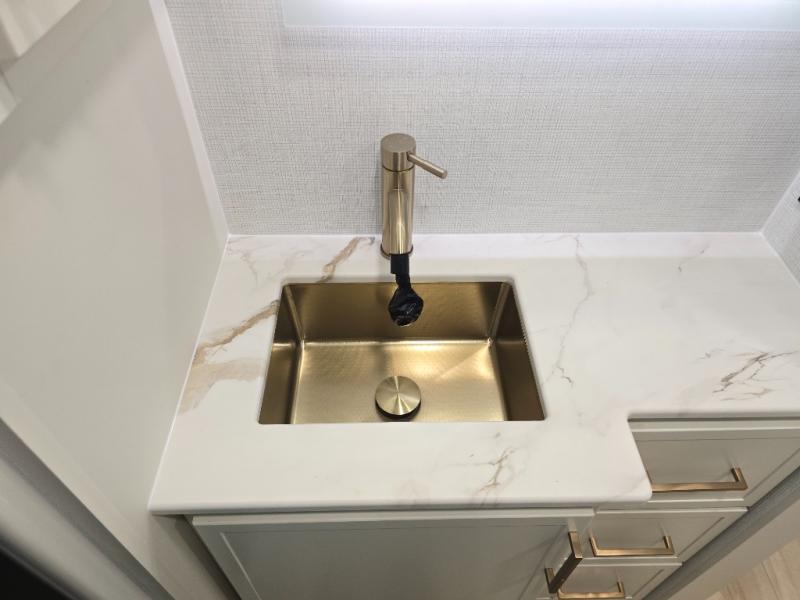 The lightweight Model I travel trailer by Brinkley is the perfect choice for those looking for an easy tow and at-home comforts! There is a drop-frame chassis, high-performance Road Armor suspension equalizer system, and Demco EZ Latch trailer coupler that automatically latches when dropped onto a hitch ball without the need of a safety pin. Additional exterior features include square Euro frameless windows, automotive-grade paint, full-width LED strip lighting in the pass-thru, and a pet & property security campside tie-down to keep your gear and furry friends safe. Inside, you'll be wowed by Brinkley's CraftSense wood trim construction, residential solid surface kitchen countertops, dimmable bedroom lights, and marine-grade neon LED shower lighting to name a few stand-out features!