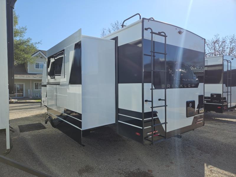 The lightweight Model I travel trailer by Brinkley is the perfect choice for those looking for an easy tow and at-home comforts! There is a drop-frame chassis, high-performance Road Armor suspension equalizer system, and Demco EZ Latch trailer coupler that automatically latches when dropped onto a hitch ball without the need of a safety pin. Additional exterior features include square Euro frameless windows, automotive-grade paint, full-width LED strip lighting in the pass-thru, and a pet & property security campside tie-down to keep your gear and furry friends safe. Inside, you'll be wowed by Brinkley's CraftSense wood trim construction, residential solid surface kitchen countertops, dimmable bedroom lights, and marine-grade neon LED shower lighting to name a few stand-out features!