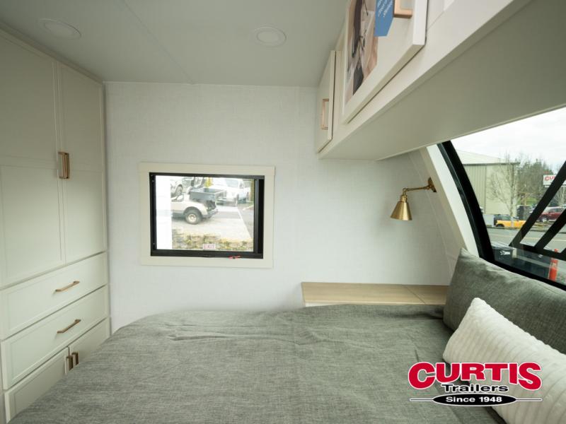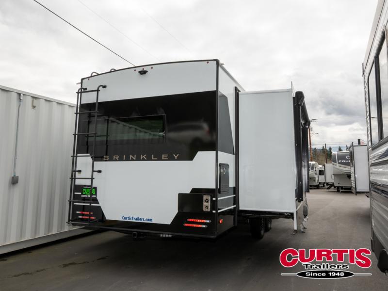 The lightweight Model I travel trailer by Brinkley is the perfect choice for those looking for an easy tow and at-home comforts! There is a drop-frame chassis, high-performance Road Armor suspension equalizer system, and Demco EZ Latch trailer coupler that automatically latches when dropped onto a hitch ball without the need of a safety pin. Additional exterior features include square Euro frameless windows, automotive-grade paint, full-width LED strip lighting in the pass-thru, and a pet & property security campside tie-down to keep your gear and furry friends safe. Inside, you'll be wowed by Brinkley's CraftSense wood trim construction, residential solid surface kitchen countertops, dimmable bedroom lights, and marine-grade neon LED shower lighting to name a few stand-out features!
