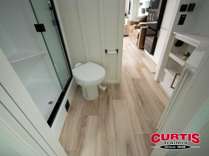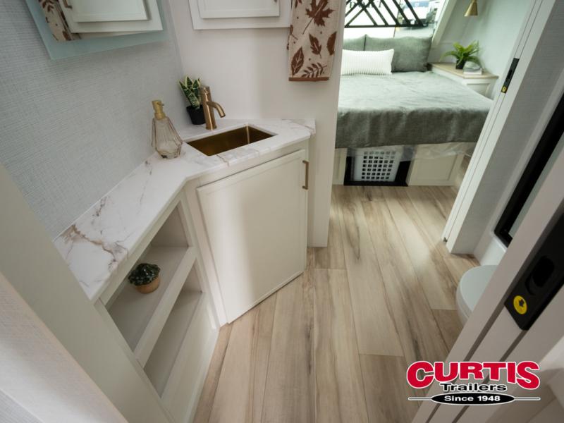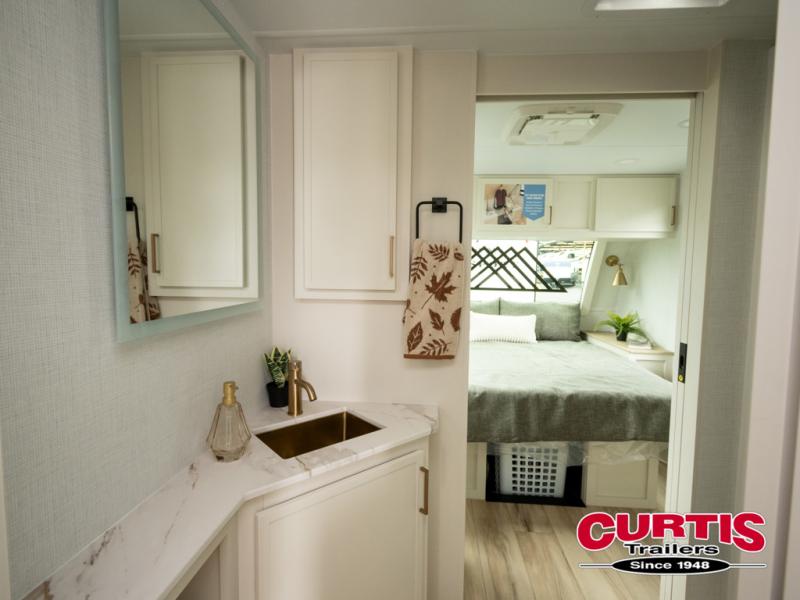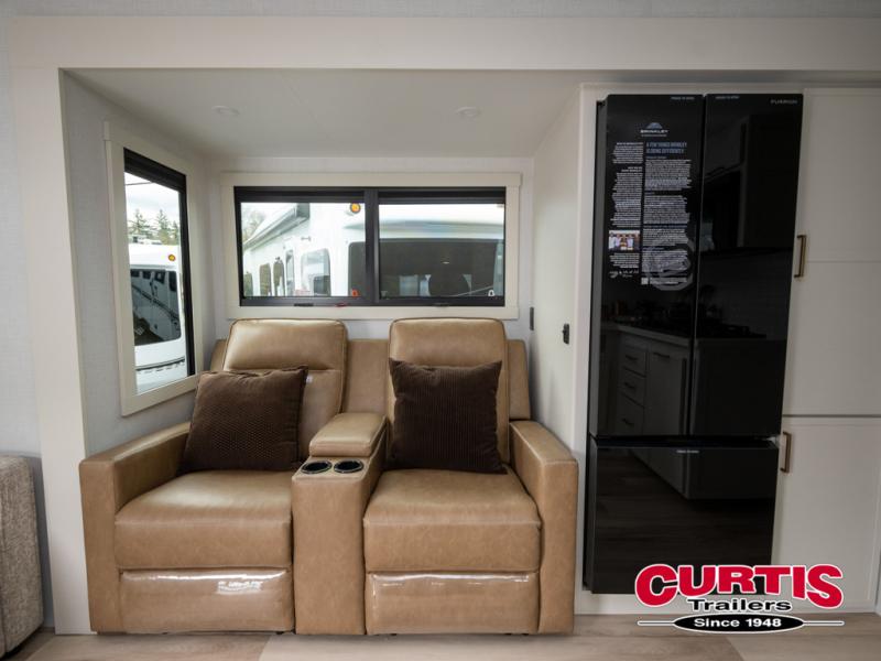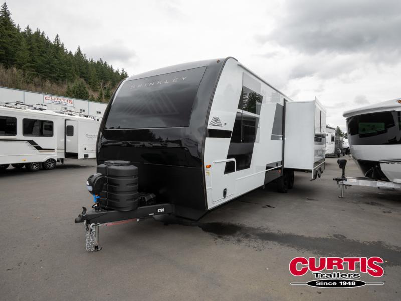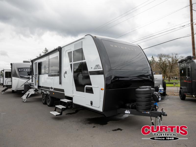 The lightweight Model I travel trailer by Brinkley is the perfect choice for those looking for an easy tow and at-home comforts! There is a drop-frame chassis, high-performance Road Armor suspension equalizer system, and Demco EZ Latch trailer coupler that automatically latches when dropped onto a hitch ball without the need of a safety pin. Additional exterior features include square Euro frameless windows, automotive-grade paint, full-width LED strip lighting in the pass-thru, and a pet & property security campside tie-down to keep your gear and furry friends safe. Inside, you'll be wowed by Brinkley's CraftSense wood trim construction, residential solid surface kitchen countertops, dimmable bedroom lights, and marine-grade neon LED shower lighting to name a few stand-out features!