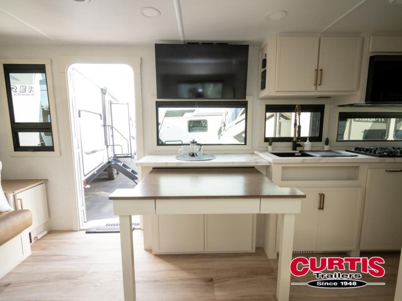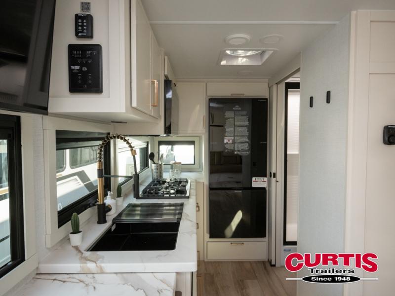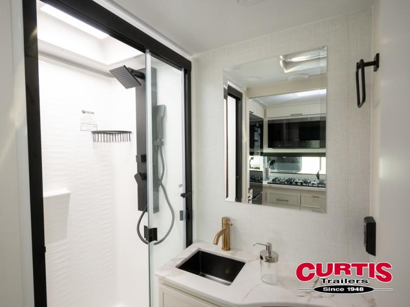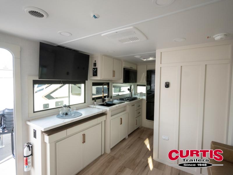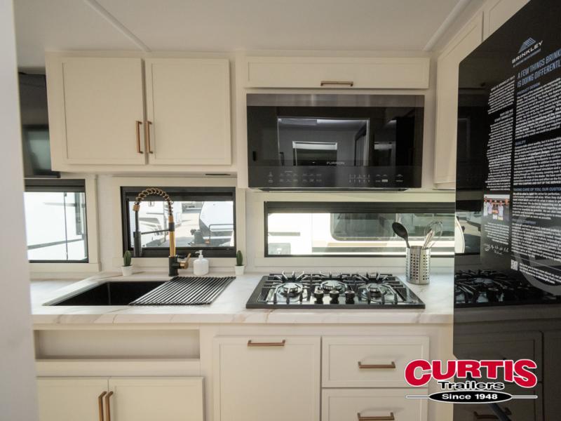 The Model Ix by Brinkley is your ticket to lightweight towing and exceptional features. This premium half-ton towable travel trailer features Brinkley's CraftSense building materials for a higher level of construction, along with a seamless laminated aluminum exterior with automotive grade full-body paint and modern graphics. You will stay powered up thanks to the power package with a 200-watt solar panel, and the Road Armor suspension will help provide a smooth tow from home to campground. The interior of the Model Ix includes premium residential cabinets with dovetail drawers, an ultra quiet and efficient A/C system, and a SoundCore Boom 2 Bluetooth waterproof speaker so you can listen to your favorite tunes indoors or outdoors!