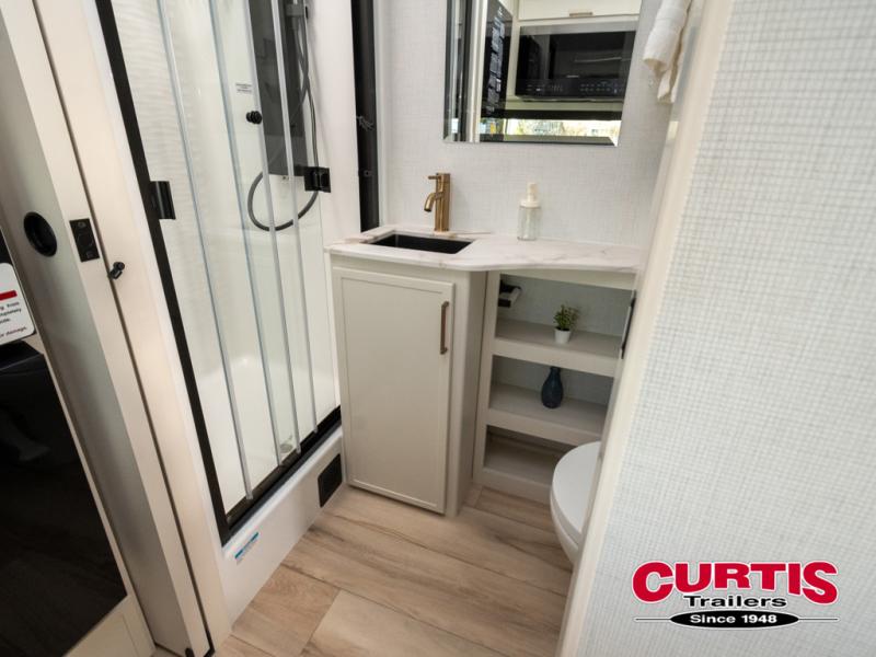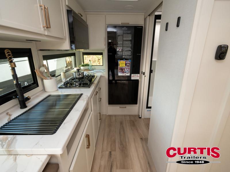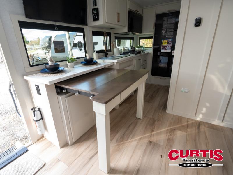 The Model Ix by Brinkley is your ticket to lightweight towing and exceptional features. This premium half-ton towable travel trailer features Brinkley's CraftSense building materials for a higher level of construction, along with a seamless laminated aluminum exterior with automotive grade full-body paint and modern graphics. You will stay powered up thanks to the power package with a 200-watt solar panel, and the Road Armor suspension will help provide a smooth tow from home to campground. The interior of the Model Ix includes premium residential cabinets with dovetail drawers, an ultra quiet and efficient A/C system, and a SoundCore Boom 2 Bluetooth waterproof speaker so you can listen to your favorite tunes indoors or outdoors!