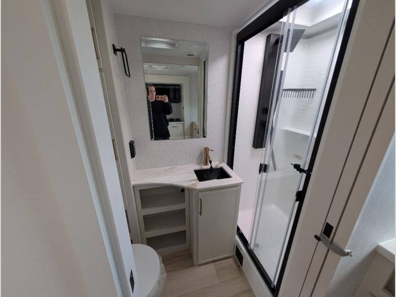 The Model Ix by Brinkley is your ticket to lightweight towing and exceptional features. This premium half-ton towable travel trailer features Brinkley's CraftSense building materials for a higher level of construction, along with a seamless laminated aluminum exterior with automotive grade full-body paint and modern graphics. You will stay powered up thanks to the power package with a 200-watt solar panel, and the Road Armor suspension will help provide a smooth tow from home to campground. The interior of the Model Ix includes premium residential cabinets with dovetail drawers, an ultra quiet and efficient A/C system, and a SoundCore Boom 2 Bluetooth waterproof speaker so you can listen to your favorite tunes indoors or outdoors!