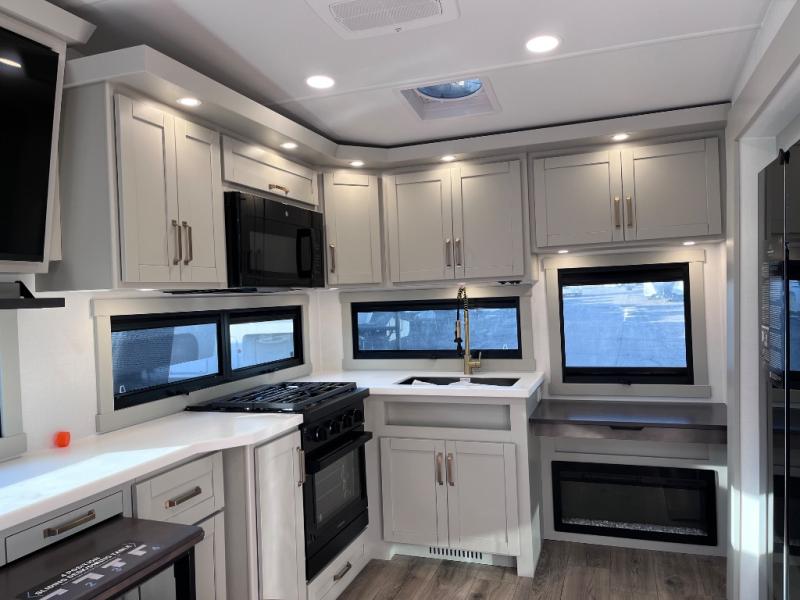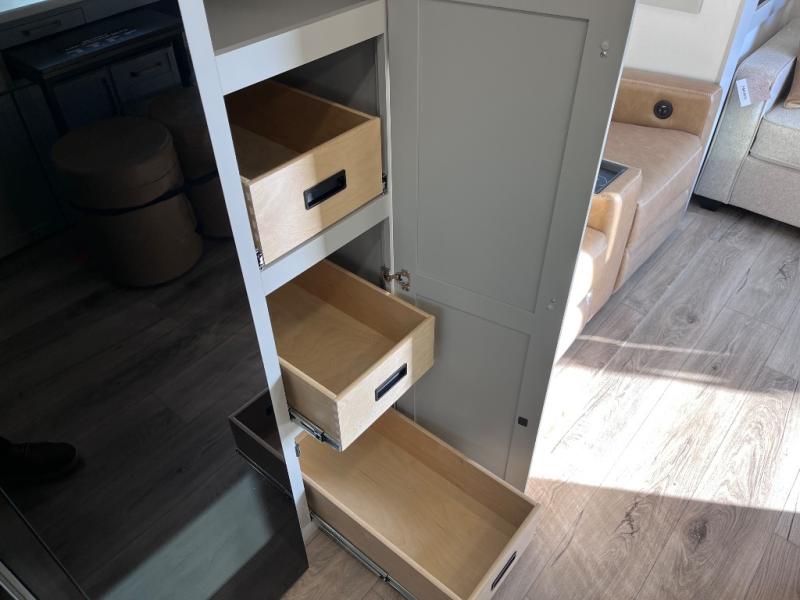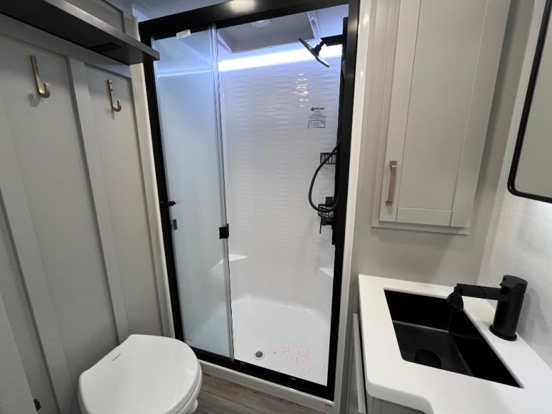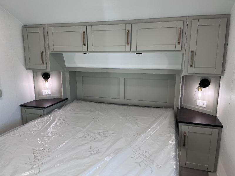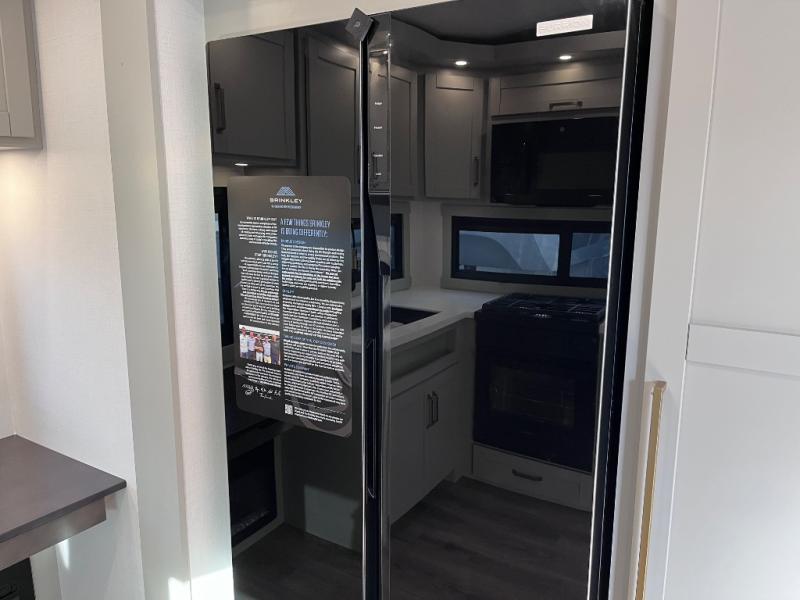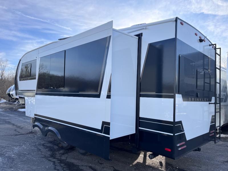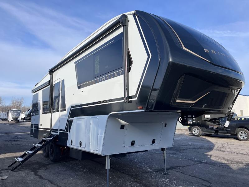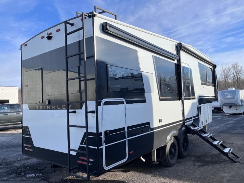 The Brinkley mid-profile Model Z fifth wheels bring you clean lines and an upscale look with plenty of style and exciting new features like the industry first brass plumbing connections. These units also feature an automotive grade front cap, plenty of exterior storage, dual exterior hot and cold showers, and wide stance leveling jacks for easy set up. Residential frameless windows provide a clean look and beautiful views, and ample electrical outlets and USB/USB-C outlets allow all of your electronics and appliances to easily be used and charged.