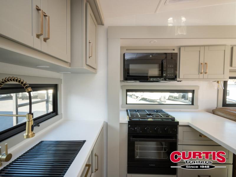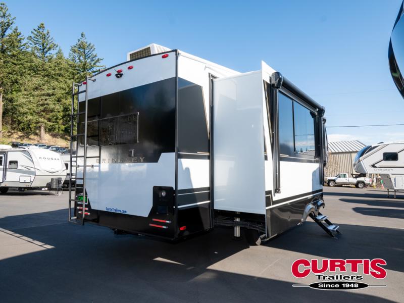 The Brinkley mid-profile Model Z fifth wheels bring you clean lines and an upscale look with plenty of style and exciting new features like the industry first brass plumbing connections. These units also feature an automotive grade front cap, plenty of exterior storage, exterior hot and cold showers, and wide stance leveling jacks for easy set up. Residential frameless windows provide a clean look and beautiful views, and ample electrical outlets and 6 USB/USB-C outlets allow all of your electronics and appliances to easily be used and charged.
