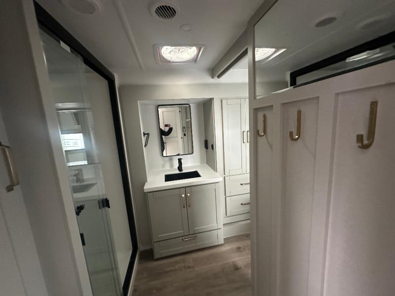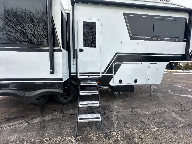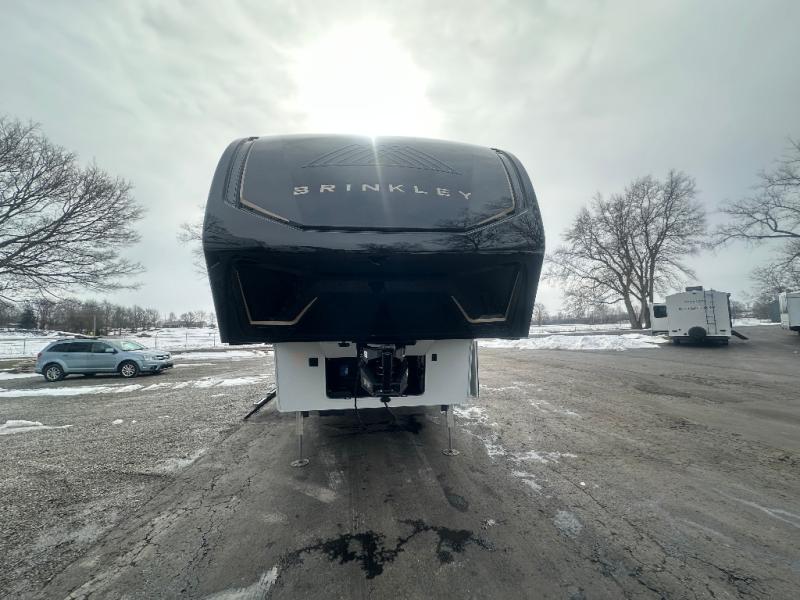 The Brinkley mid-profile Model Z fifth wheels bring you clean lines and an upscale look with plenty of style and exciting new features like the industry first brass plumbing connections. These units also feature an automotive grade front cap, plenty of exterior storage, exterior hot and cold showers, and wide stance leveling jacks for easy set up. Residential frameless windows provide a clean look and beautiful views, and ample electrical outlets and 6 USB/USB-C outlets allow all of your electronics and appliances to easily be used and charged.