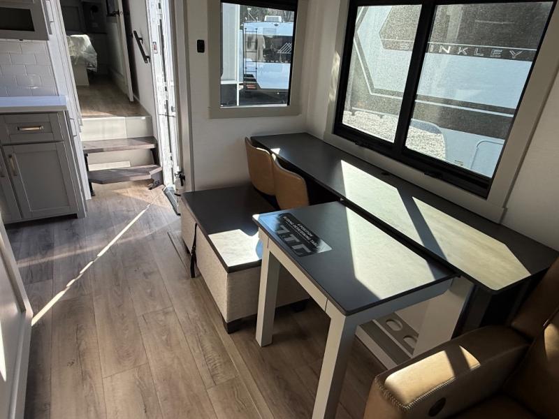 The Brinkley mid-profile Model Z fifth wheels bring you clean lines and an upscale look with plenty of style and exciting new features like the industry first brass plumbing connections. These units also feature an automotive grade front cap, plenty of exterior storage, dual exterior hot and cold showers, and wide stance leveling jacks for easy set up. Residential frameless windows provide a clean look and beautiful views, and ample electrical outlets and USB/USB-C outlets allow all of your electronics and appliances to easily be used and charged.