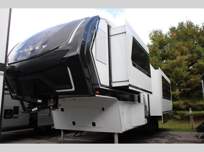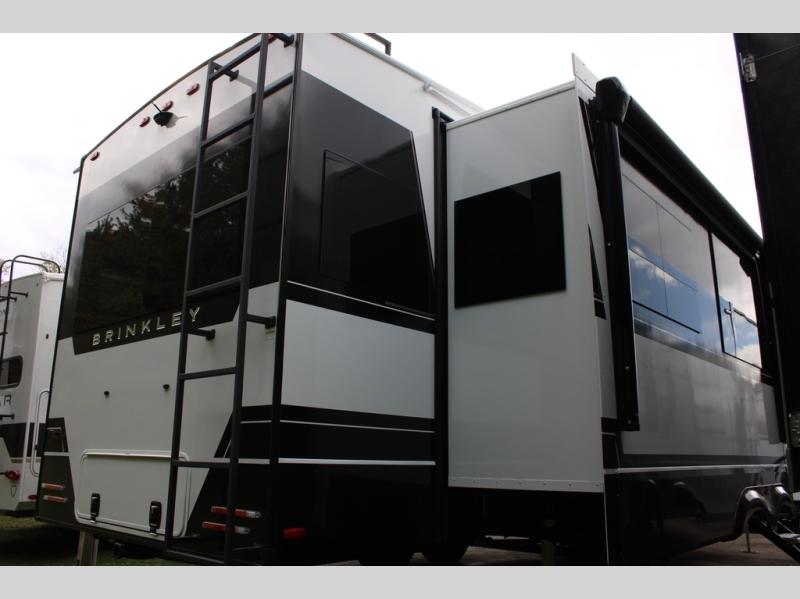 The Brinkley mid-profile Model Z fifth wheels bring you clean lines and an upscale look with plenty of style and exciting new features like the industry first brass plumbing connections. These units also feature an automotive grade front cap, plenty of exterior storage, dual exterior hot and cold showers, and wide stance leveling jacks for easy set up. Residential frameless windows provide a clean look and beautiful views, and ample electrical outlets and USB/USB-C outlets allow all of your electronics and appliances to easily be used and charged.