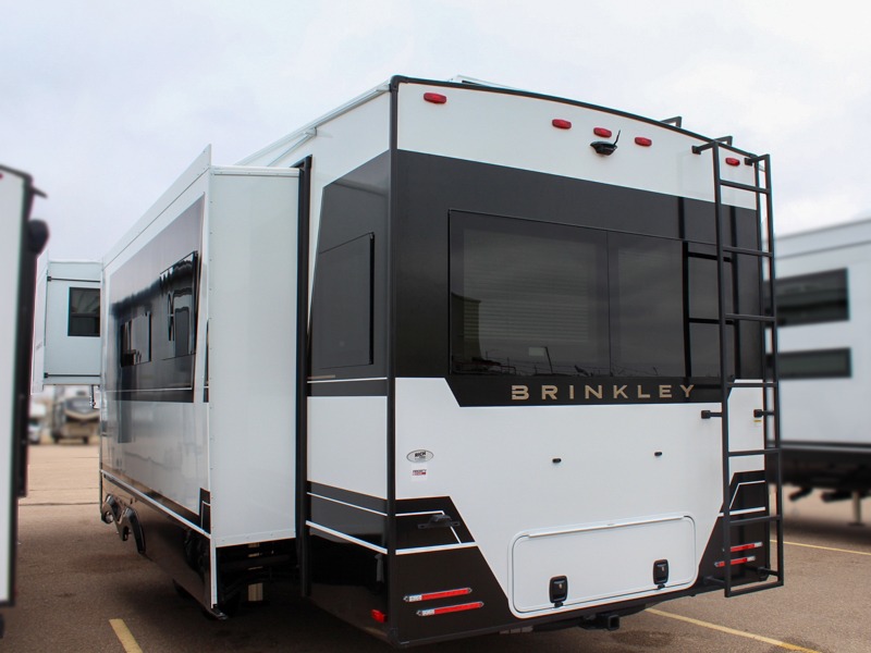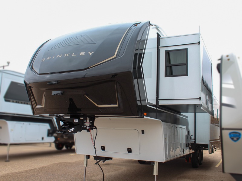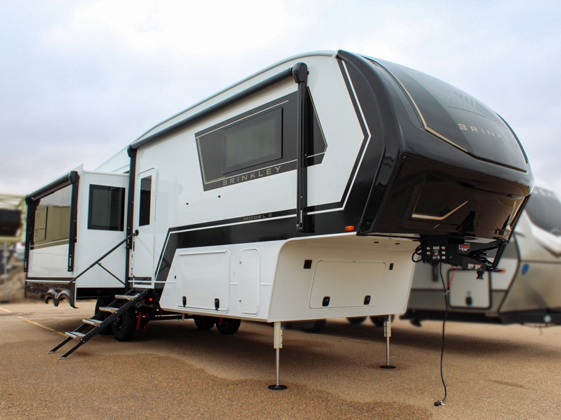 The Brinkley mid-profile Model Z fifth wheels bring you clean lines and an upscale look with plenty of style and exciting new features like the industry first brass plumbing connections. These units also feature an automotive grade front cap, plenty of exterior storage, dual exterior hot and cold showers, and wide stance leveling jacks for easy set up. Residential frameless windows provide a clean look and beautiful views, and ample electrical outlets and 6 USB/USB-C outlets allow all of your electronics and appliances to easily be used and charged.